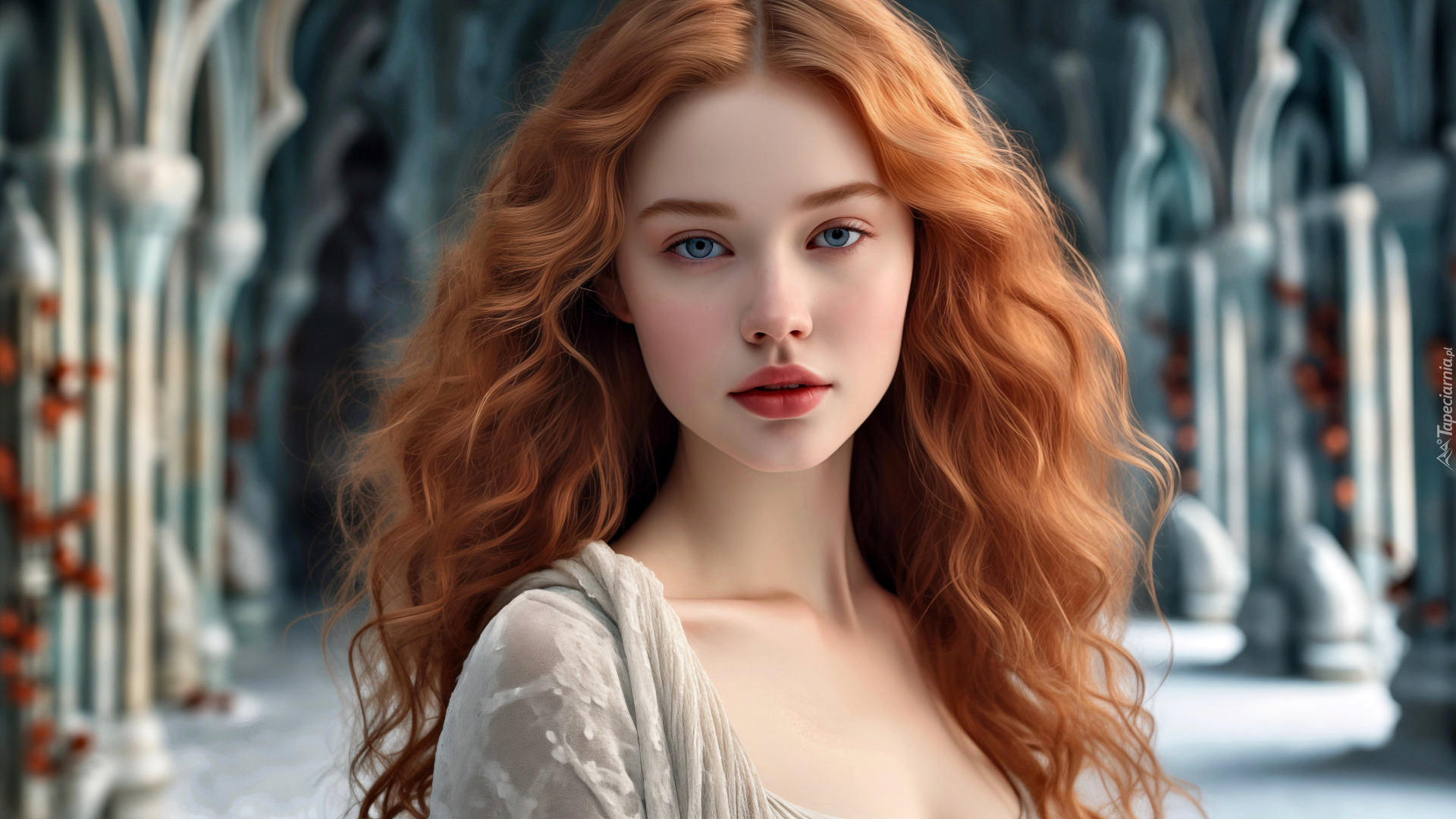 Edytor tapety: Twarz rudej długowłosej kobiety