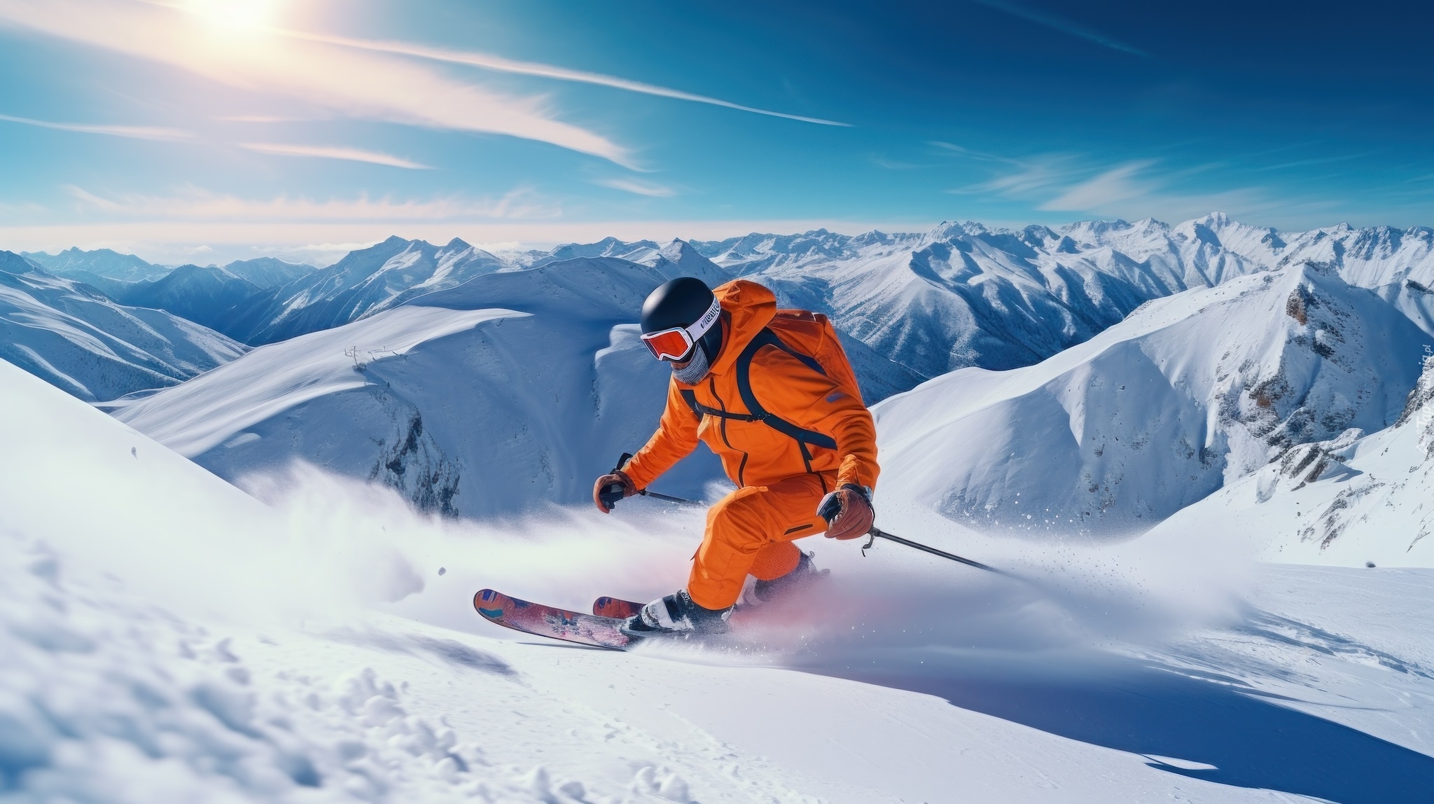 Edytor tapety: Narciarz na górskim stoku