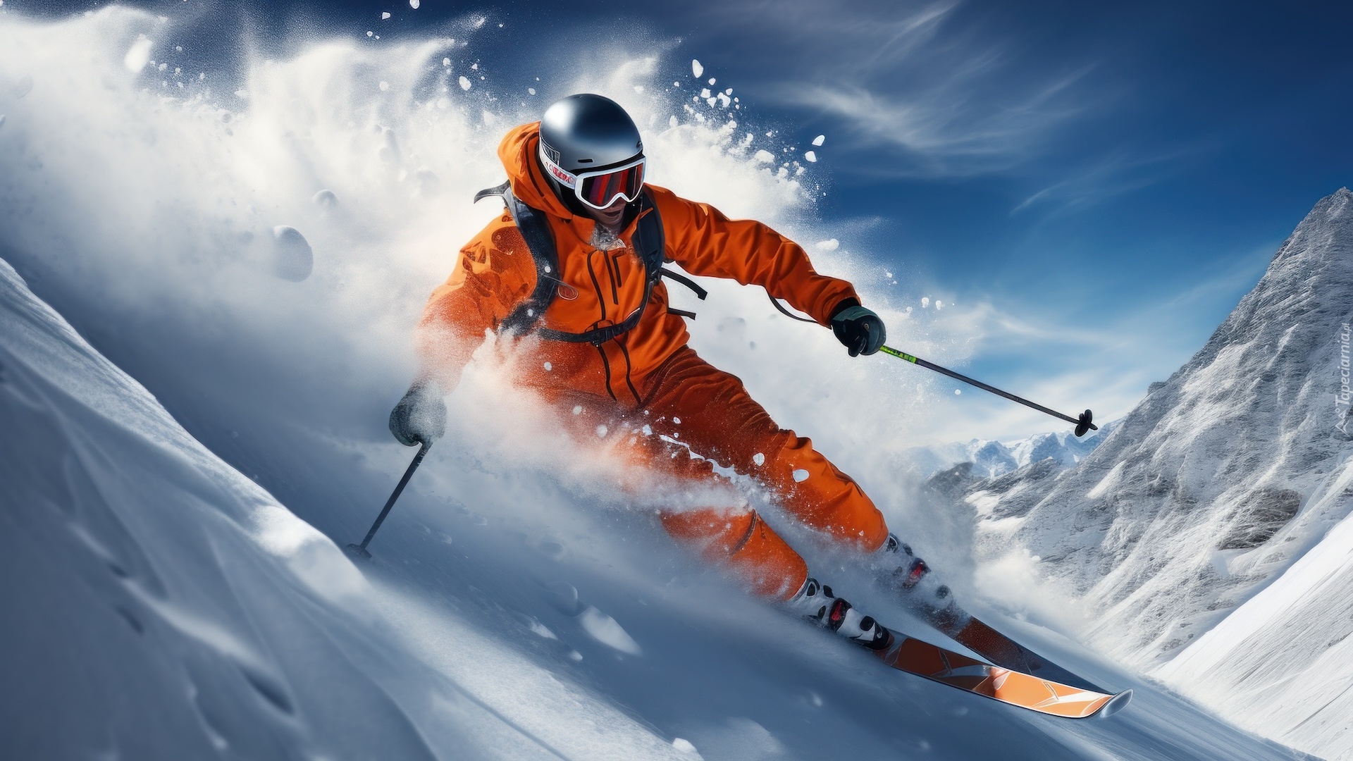 Edytor tapety: Narciarz na ośnieżonym stoku góry