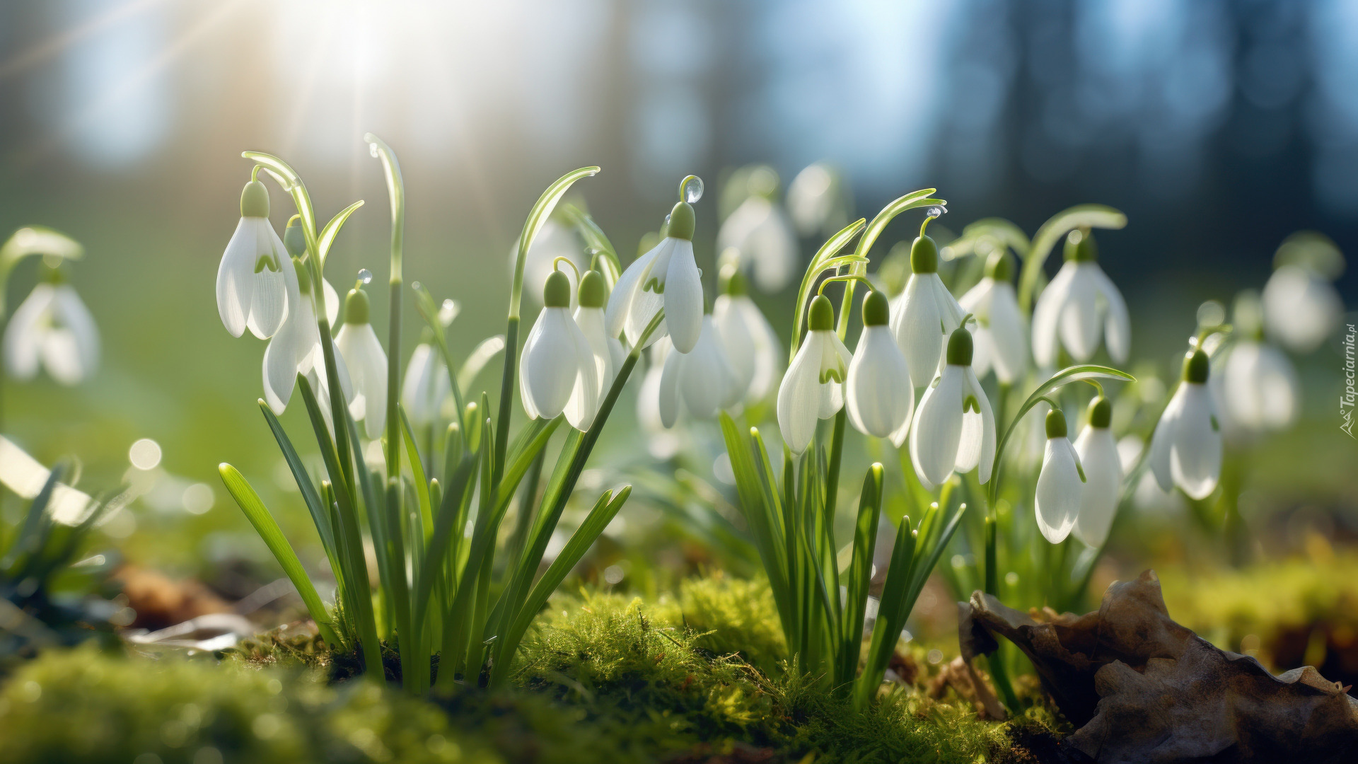 Edytor tapety: Kępki przebiśniegów w blasku światła