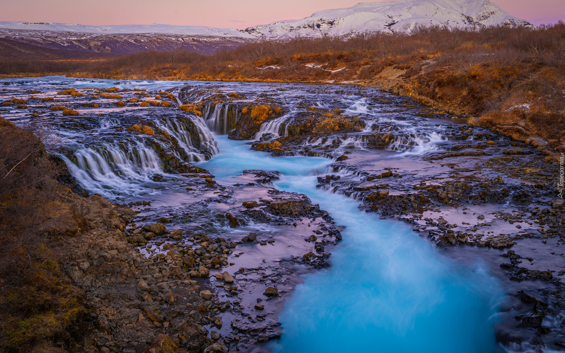 Edytor tapety: Wodospad Bruarfoss Waterfall i rzeka Bruara w Islandii