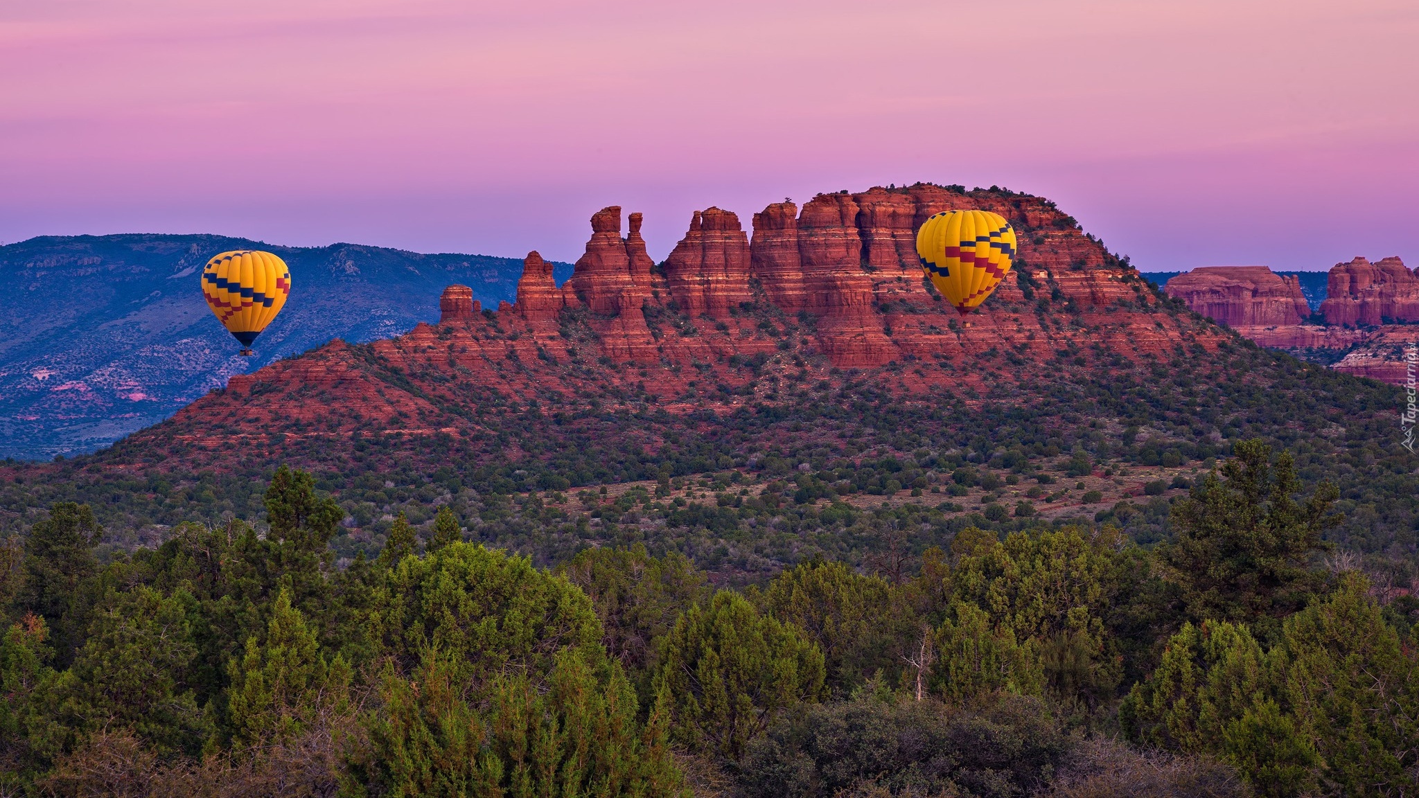 Edytor tapety: Balony na tle czerwonych skał w Sedonie