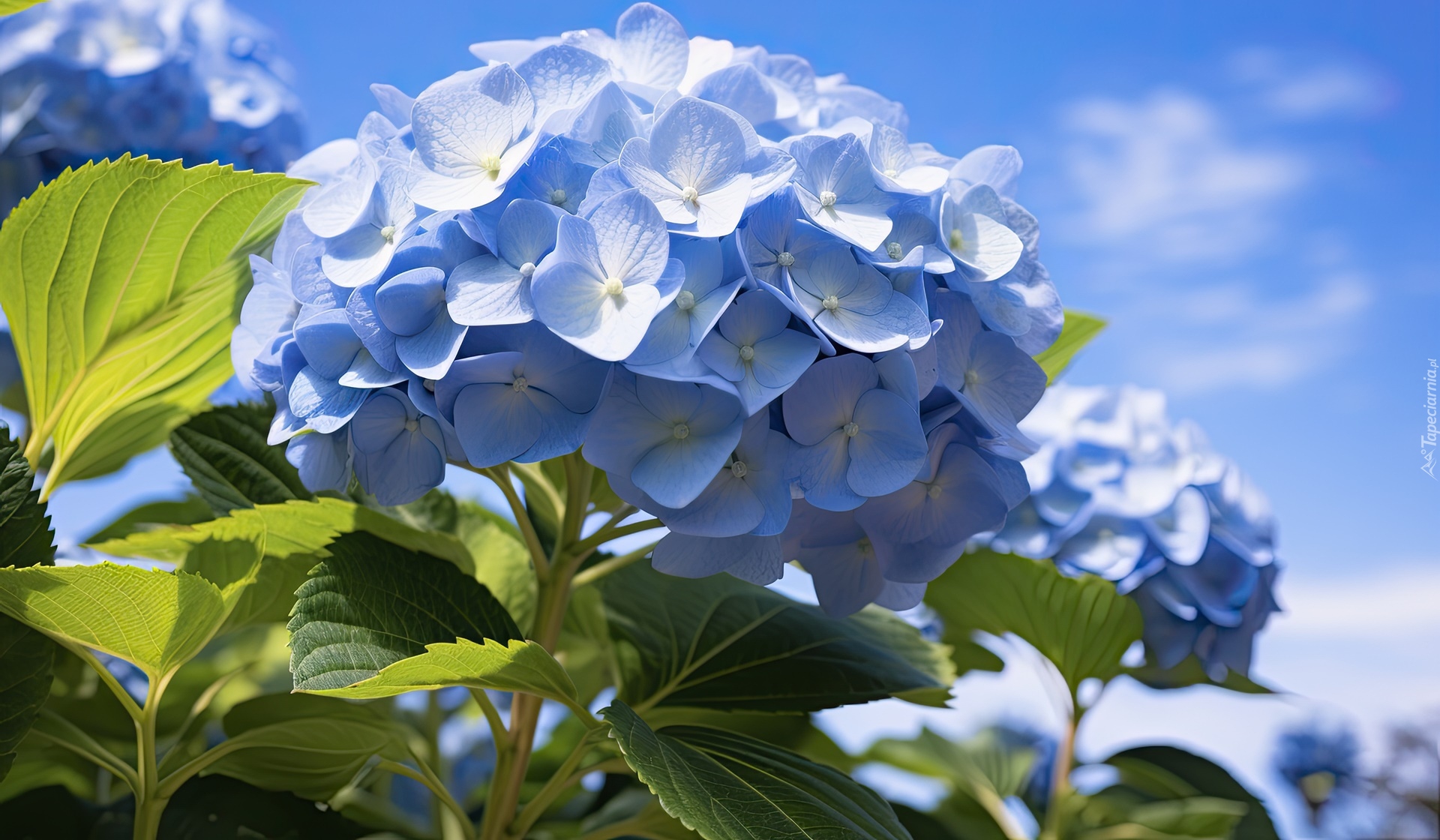 Edytor tapety: Niebieskie hortensje w zbliżeniu