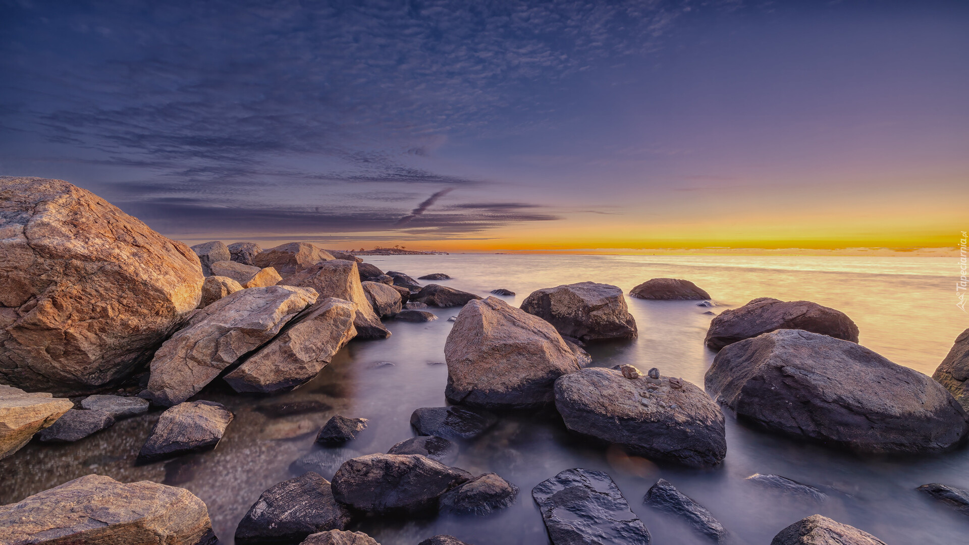Edytor tapety: Kamienie na plaży Hammonasset Beach w Connecticut