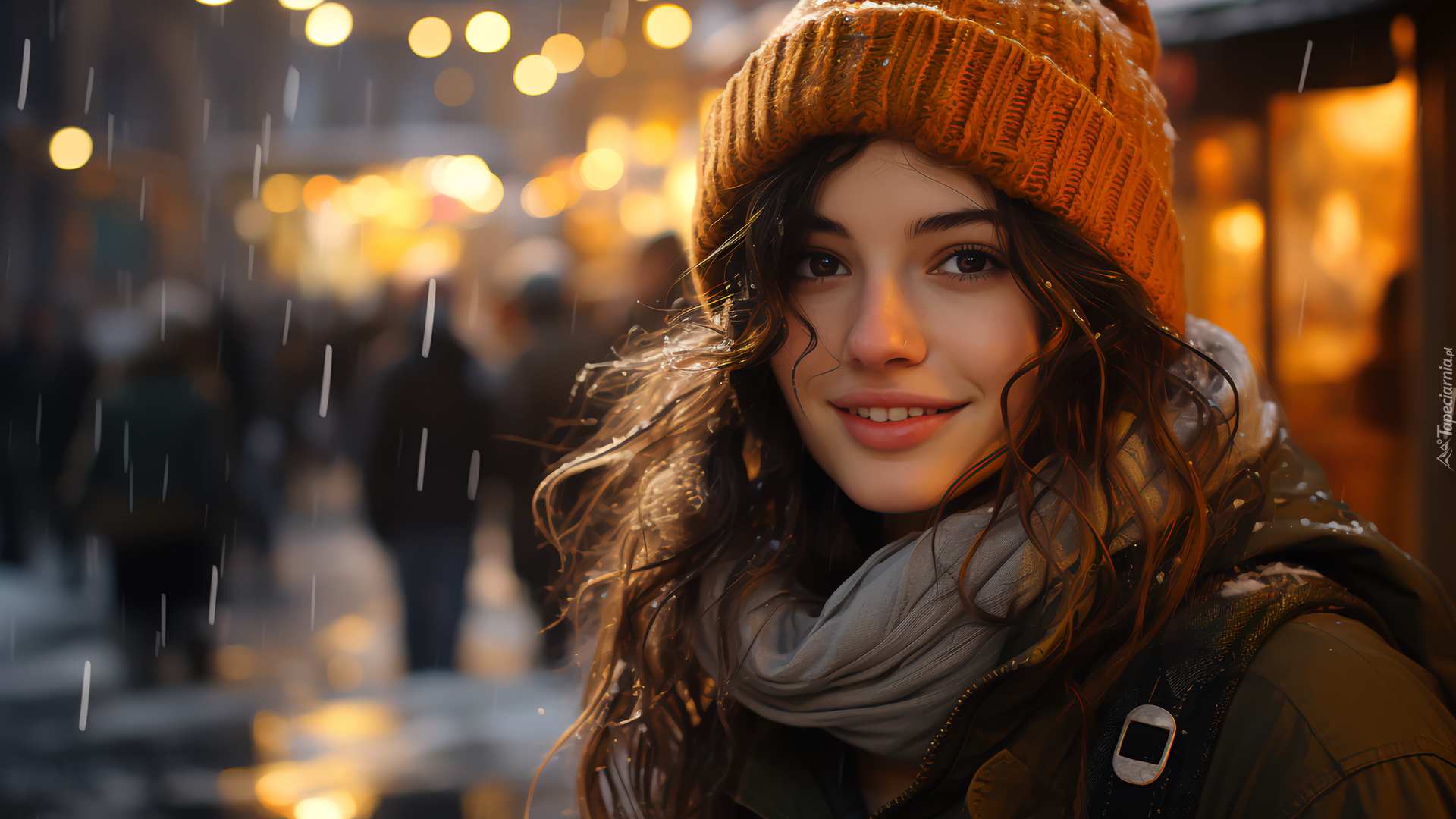 Edytor tapety: Uśmiech na twarzy kobiety w czapce