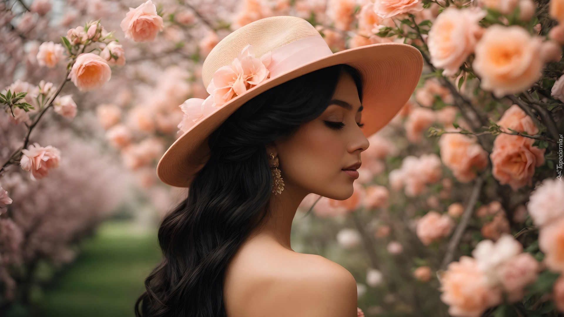 Edytor tapety: Profil twarzy kobiety w kapeluszu