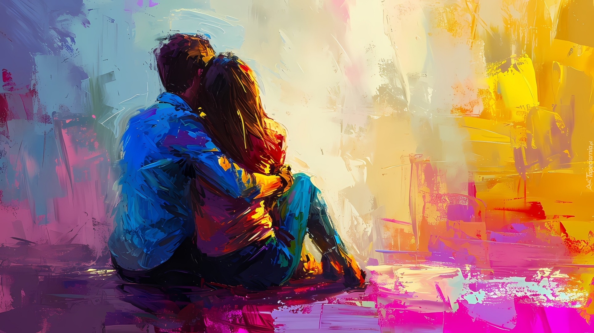 Edytor tapety: Zakochana para w kolorowej grafice