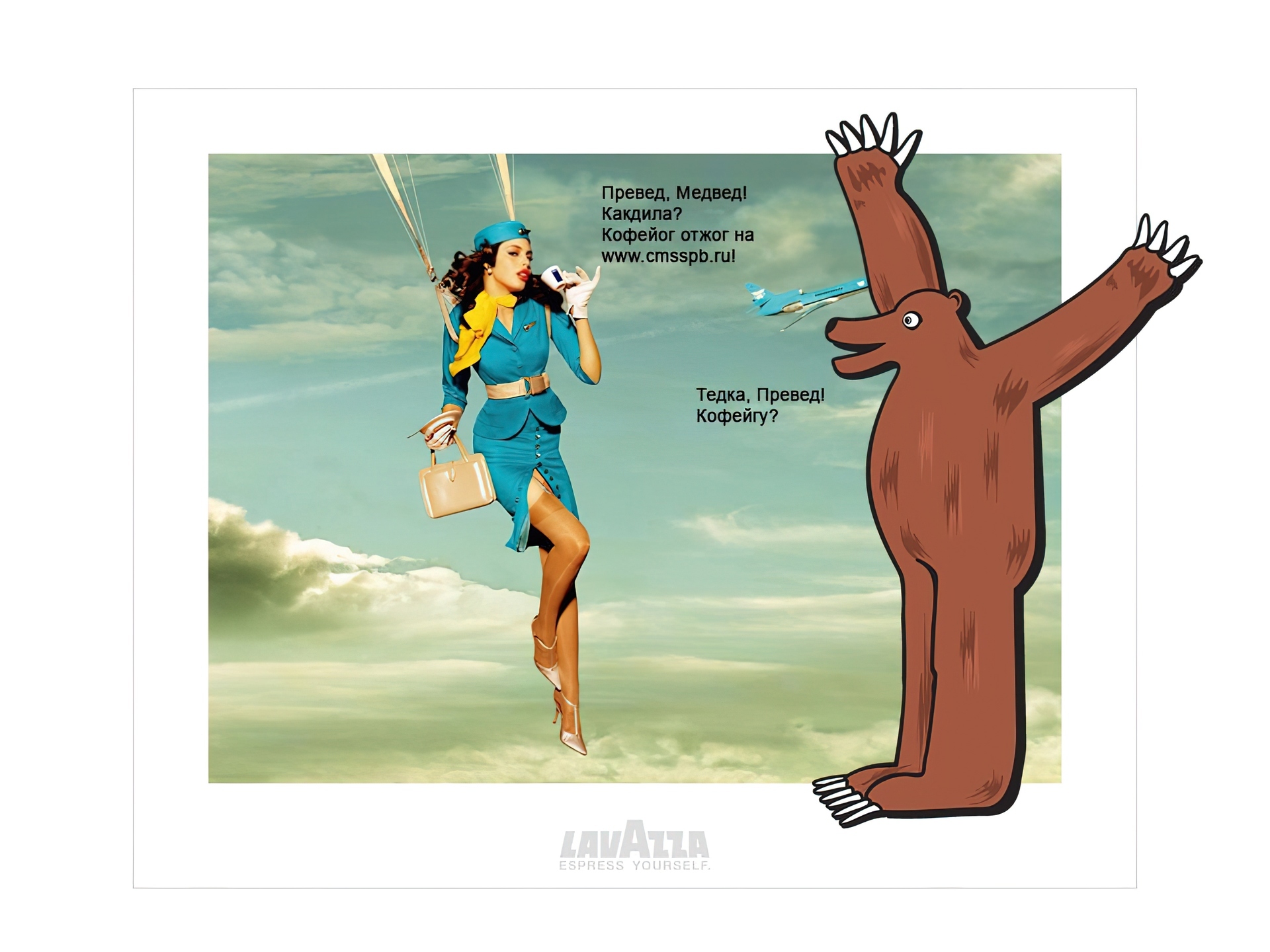 Edytor tapety: Lavazza, niedźwiedź, stewardessa