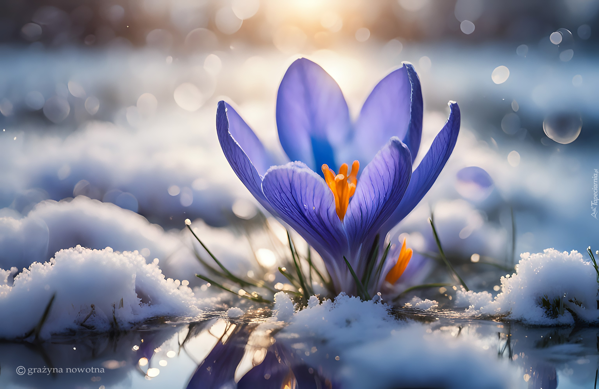 Edytor tapety: Fioletowy krokus w śniegu