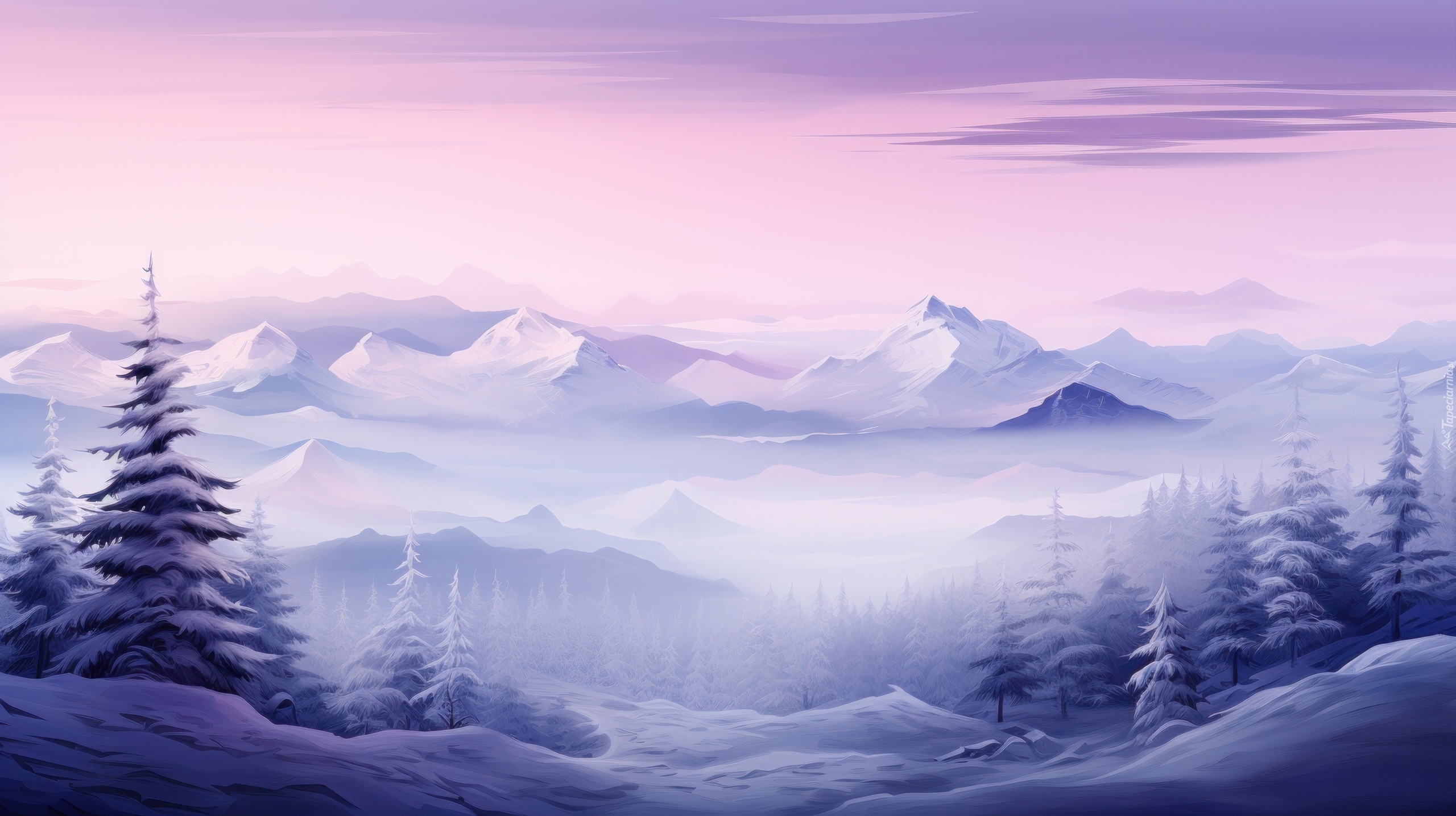 Edytor tapety: Mgła nad zalesioną doliną w górach