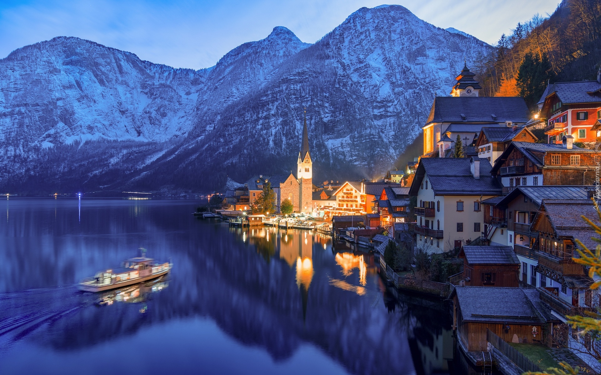 Edytor tapety: Domy na brzegu jeziora Hallstattersee w Hallstatt