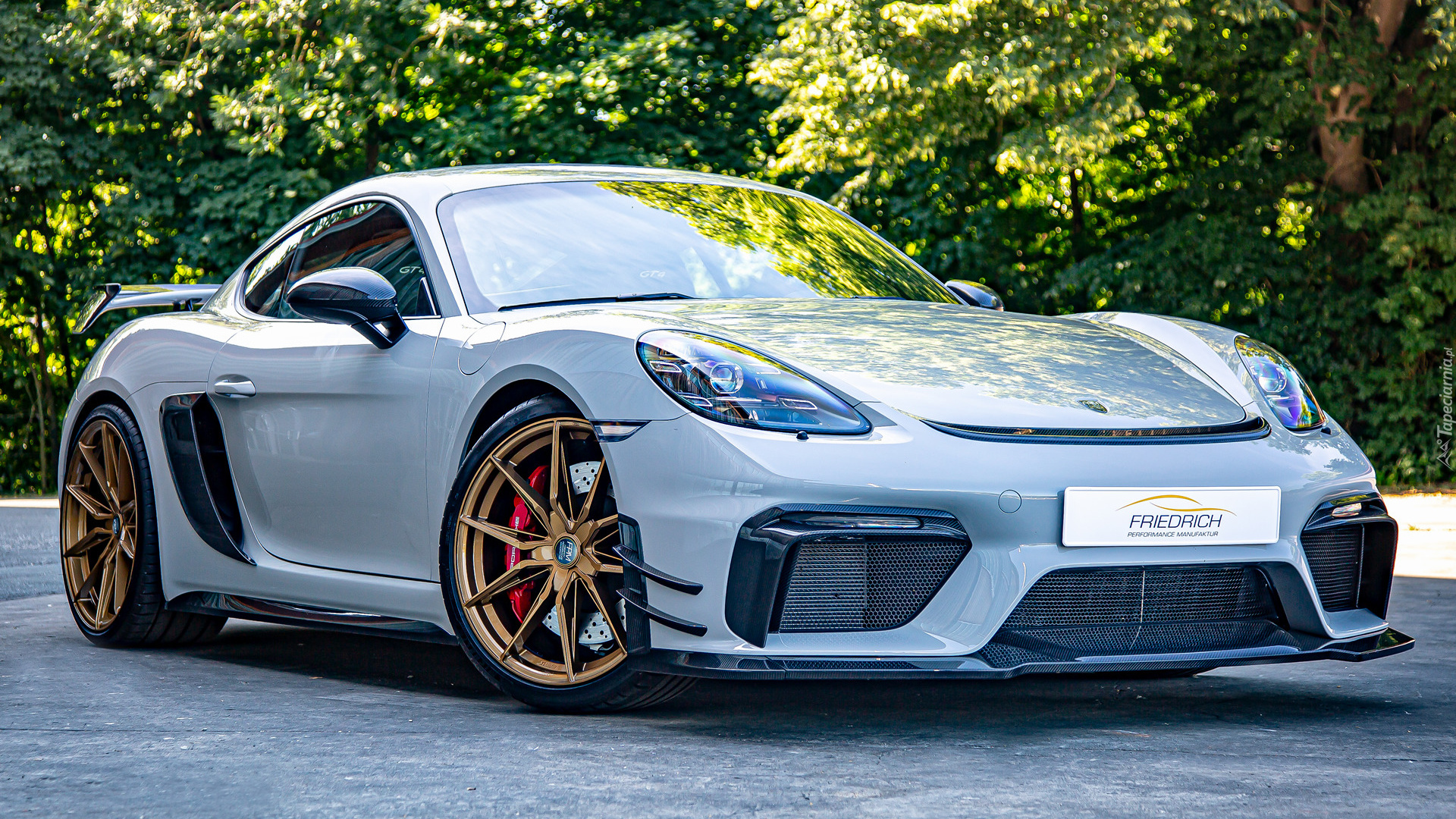 Edytor tapety: Srebrne Porsche 718 Cayman GT4
