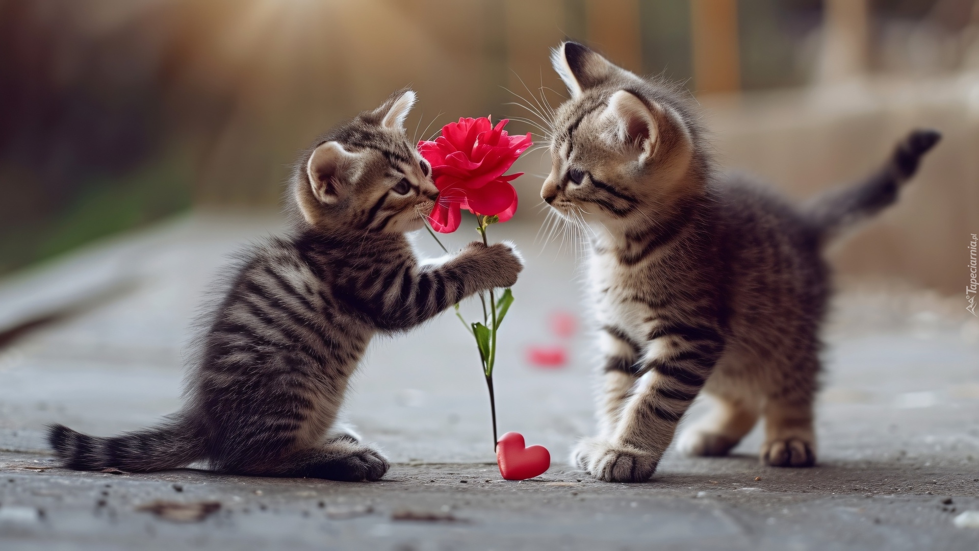 Edytor tapety: Dwa kotki z różą i serduszkiem