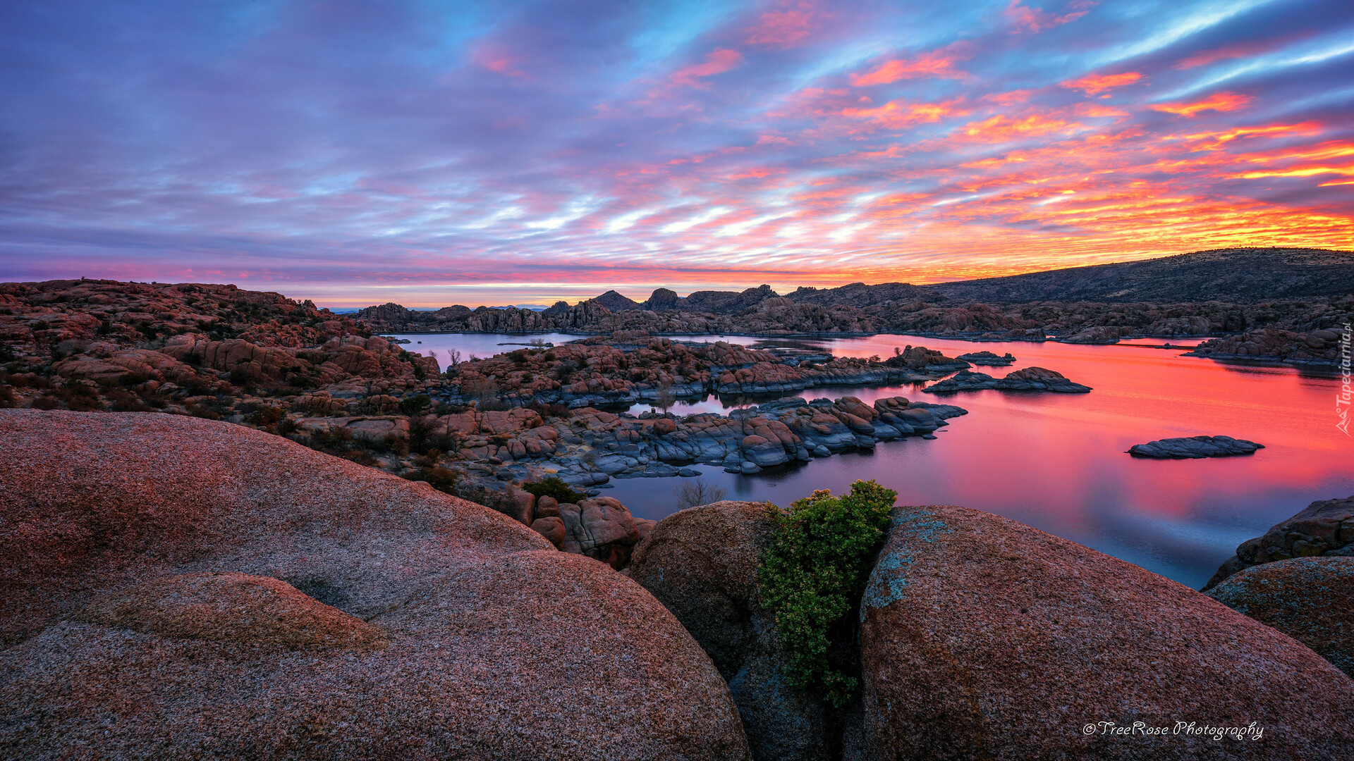 Edytor tapety: Skały nad jeziorem Watson pod niebem wschodzącego słońca
