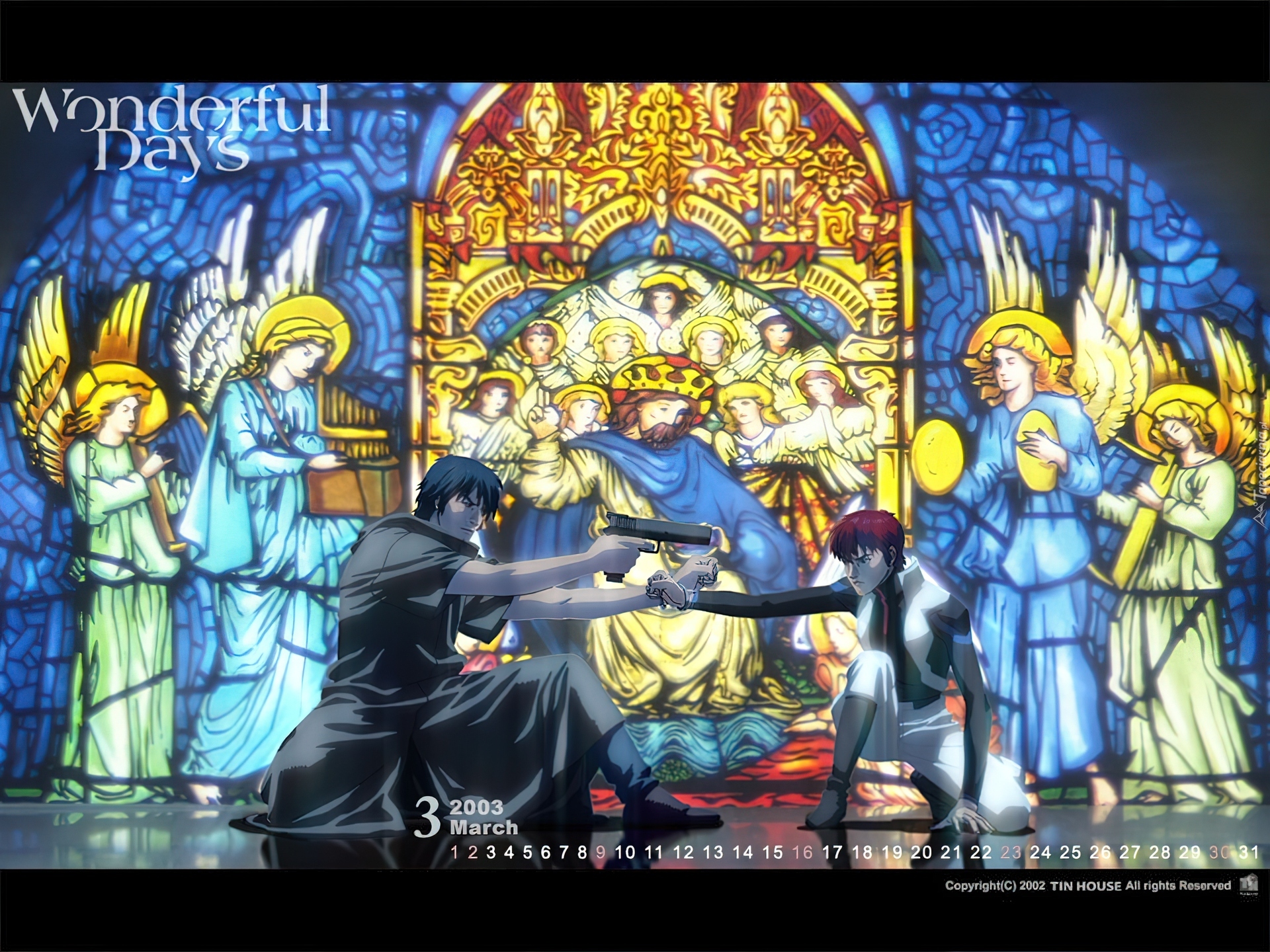 Edytor tapety: Wonderful Days, Manga Anime, witraż, postacie, pistolet