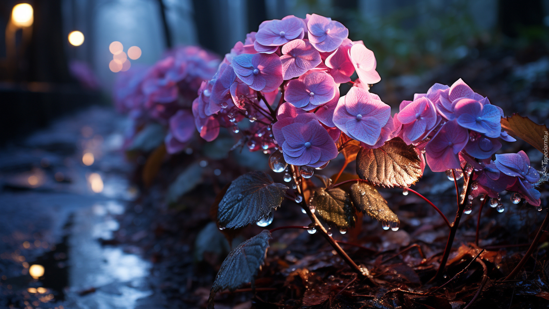 Edytor tapety: Zroszone kwiaty i liście hortensji
