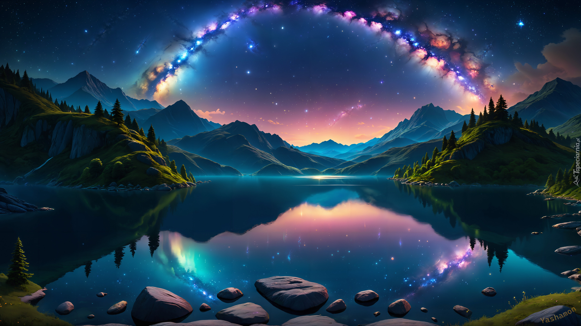Edytor tapety: Droga mleczna nad jeziorem w 2D