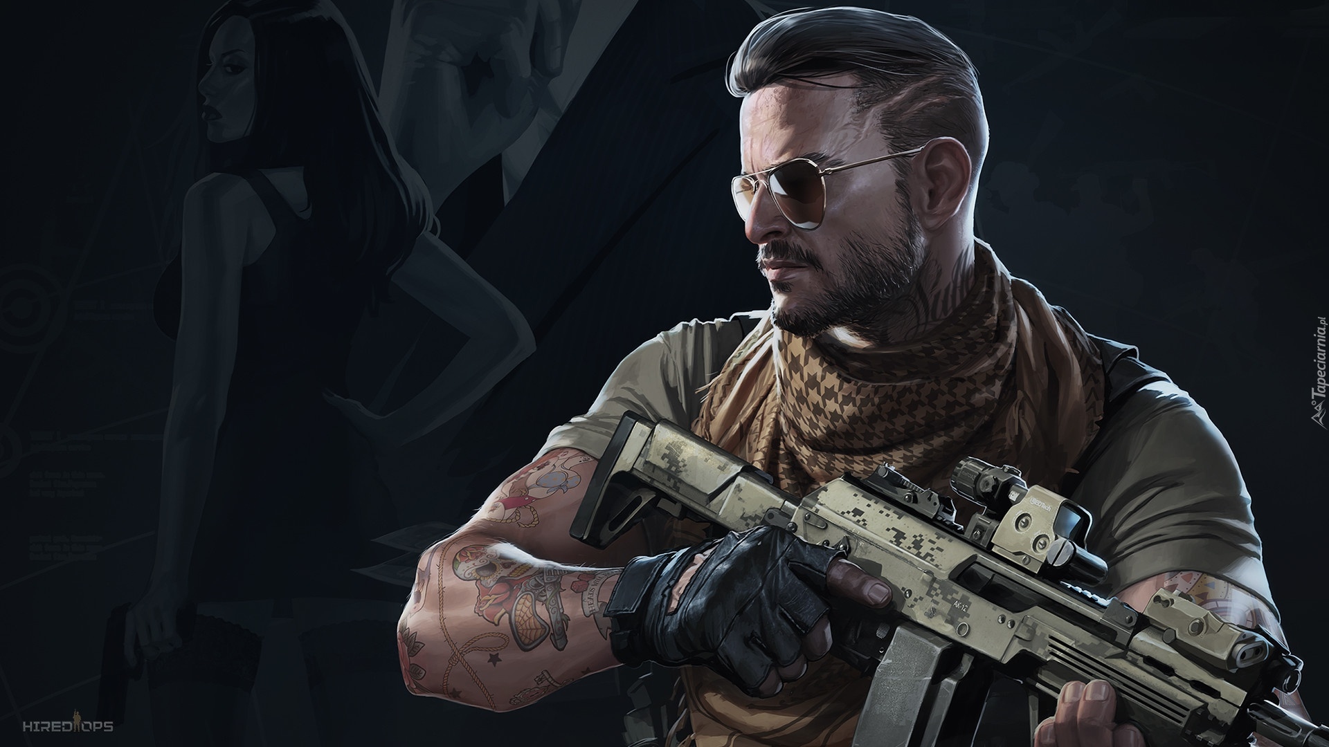 Edytor tapety: Mężczyzna w okularach z karabinem w dłoniach