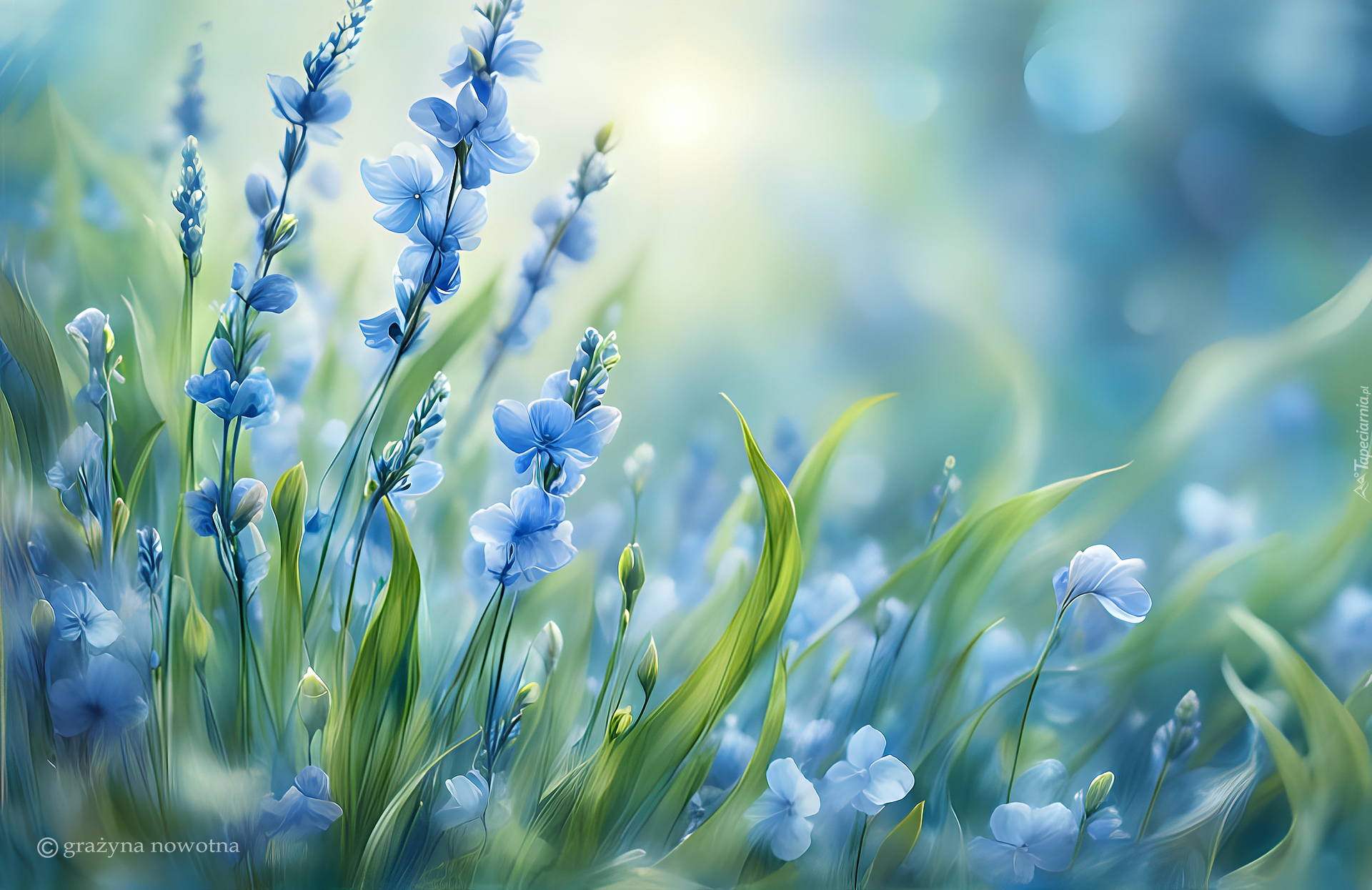 Edytor tapety: Grafika z niebieskimi kwiatkami