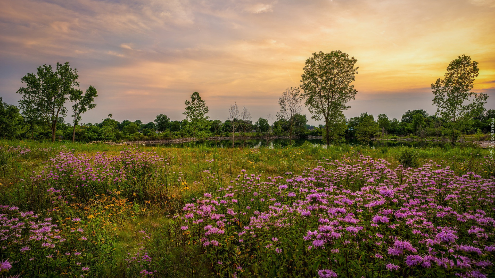 Edytor tapety: Kolorowe niebo nad łąką