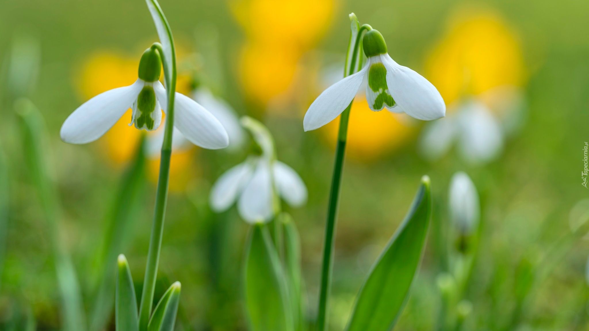 Edytor tapety: Dwa przebiśniegi na rozmytym tle