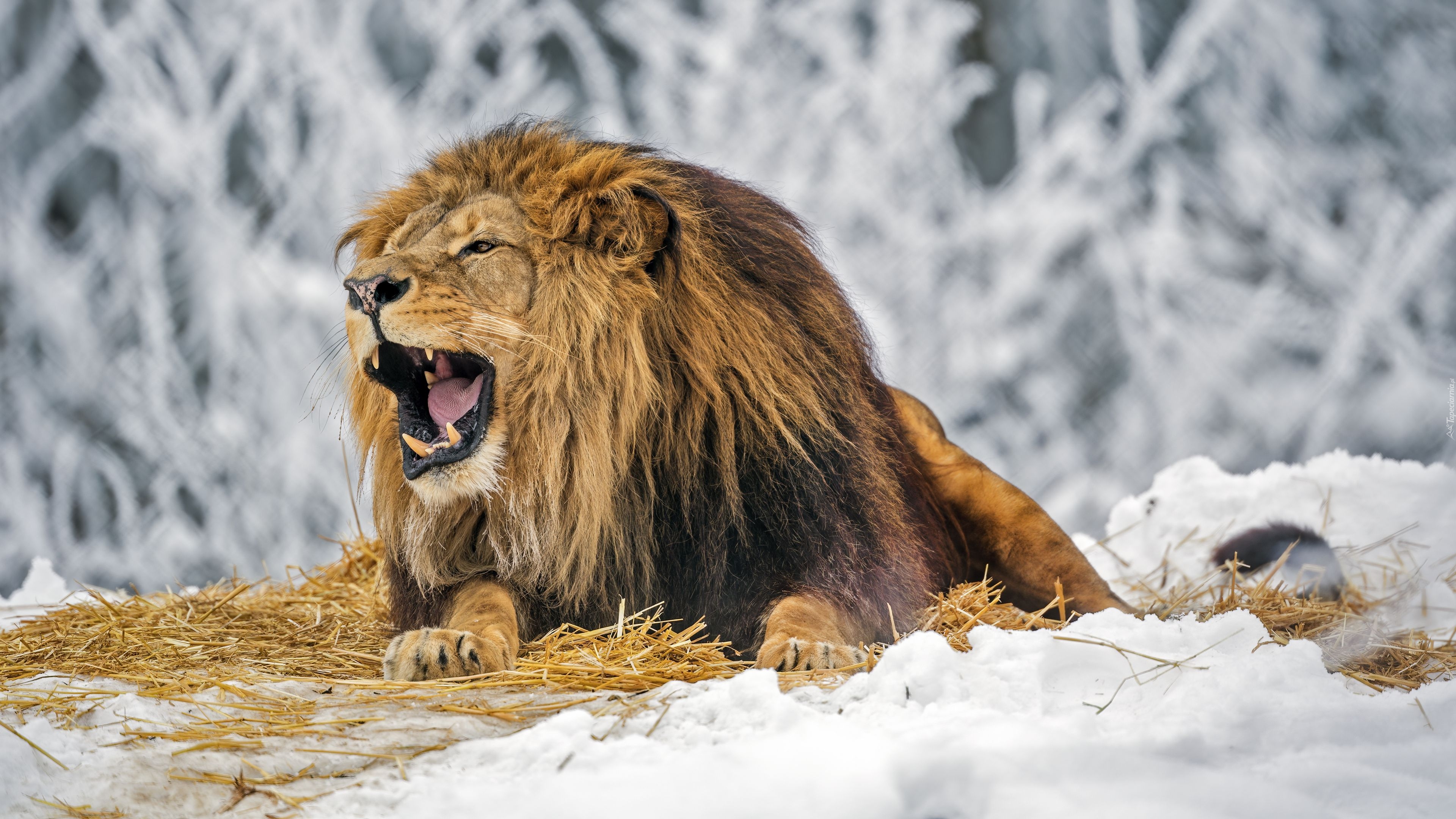 Edytor tapety: Ryczący lew na słomie