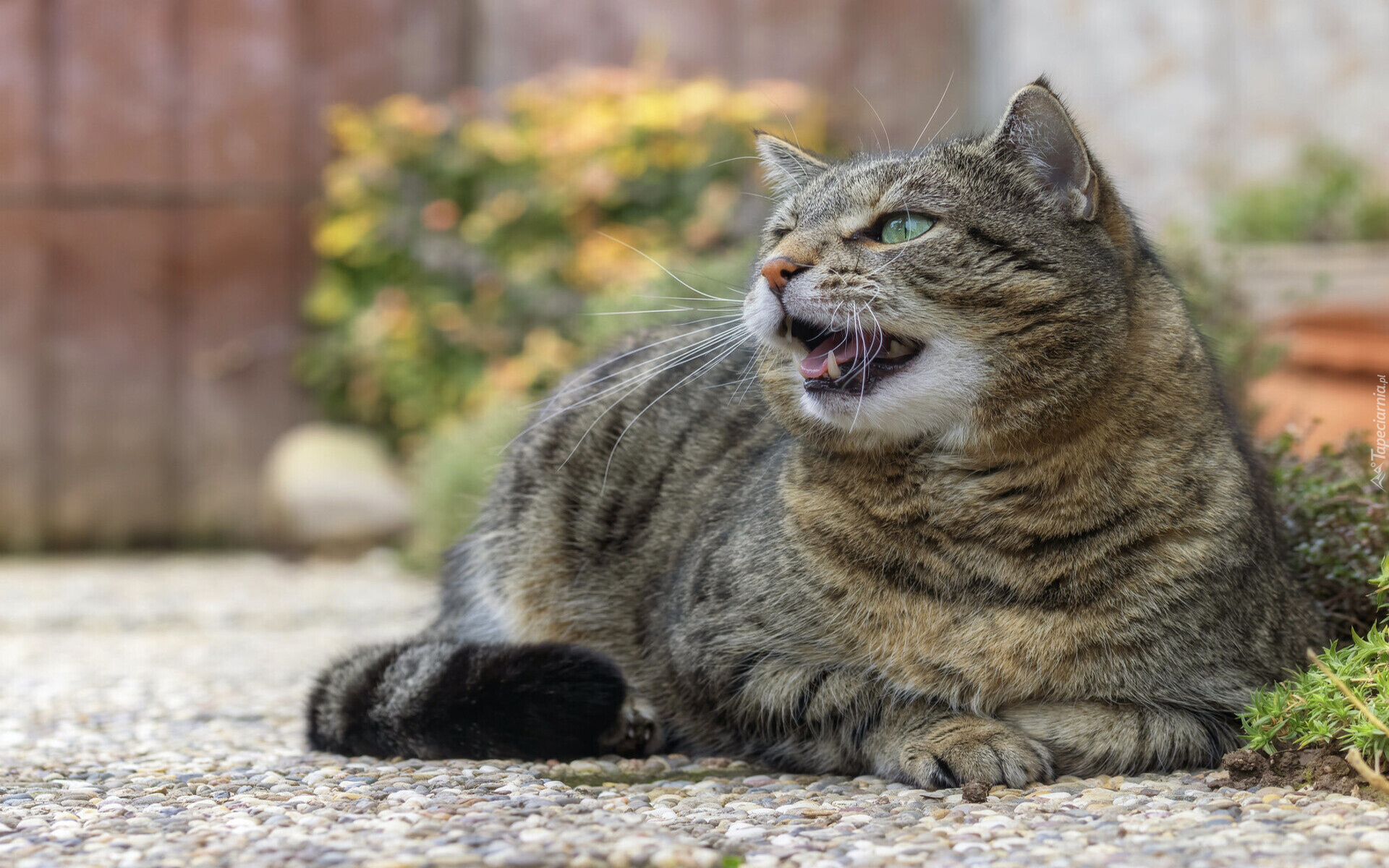 Edytor tapety: Leżący kot z otwartym pyszczkiem