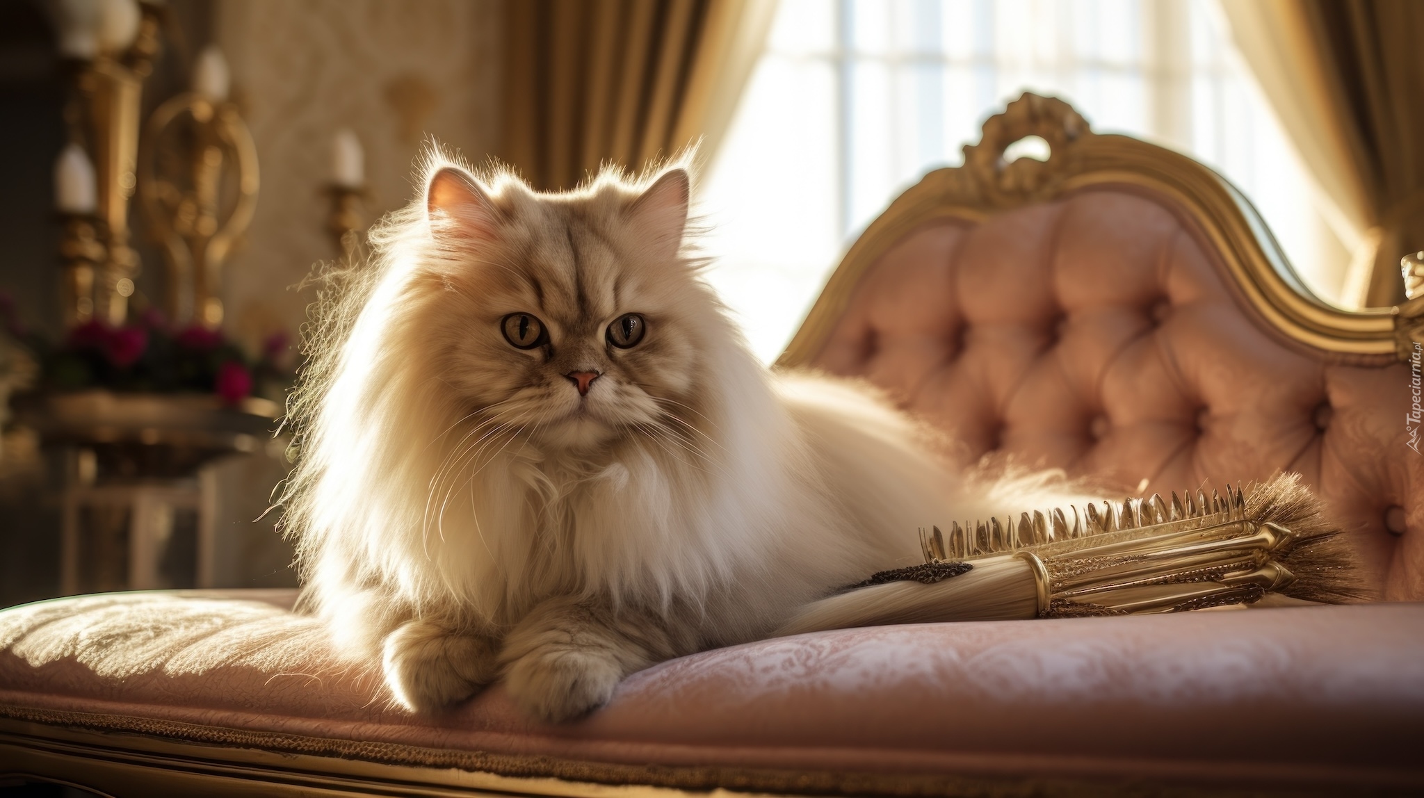 Edytor tapety: Kot perski ze szczotką na kanapie