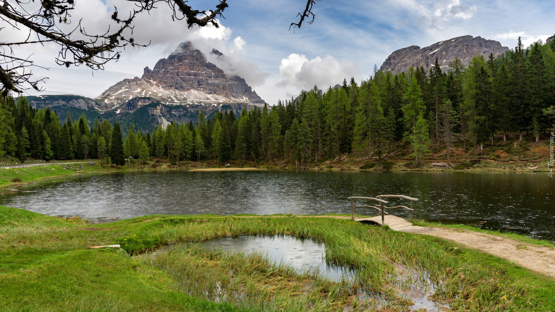 Edytor tapety: Mostek nad jeziorem Lake Antorno w Dolomitach