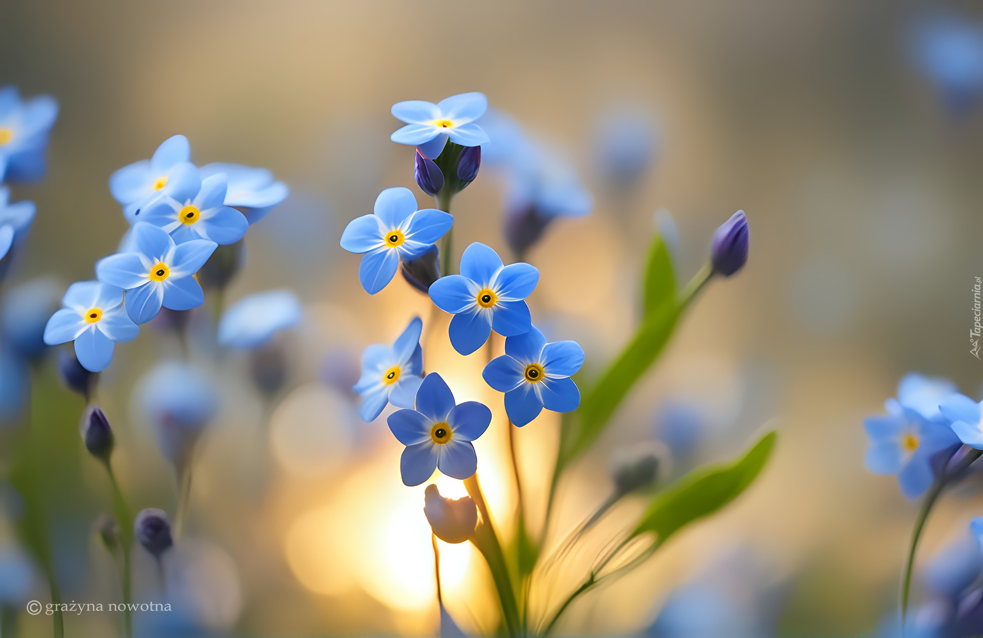 Edytor tapety: Niezapominajki niebieskie na rozmytym tle