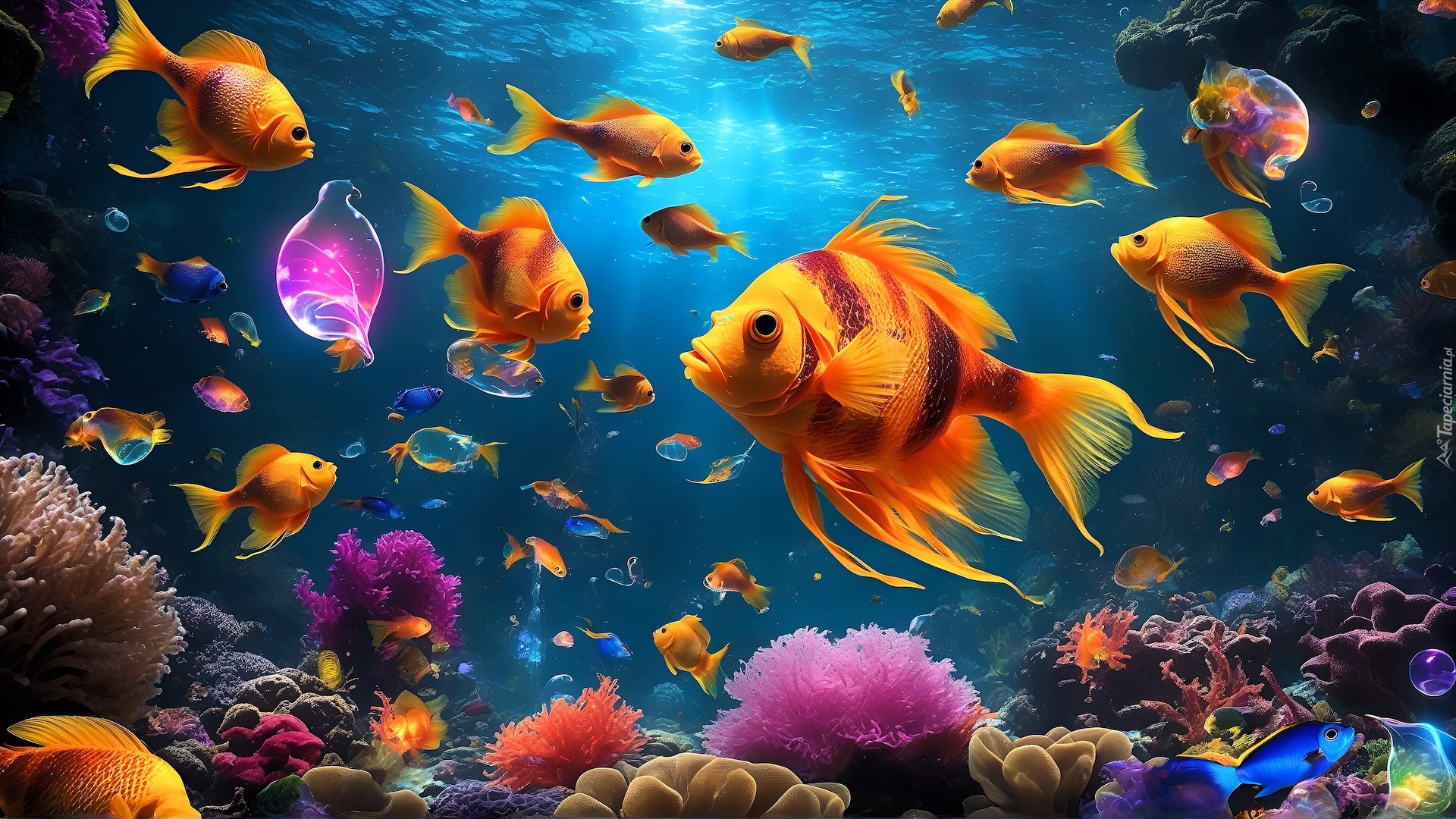 Edytor tapety: Koralowce i kolorowe rybki na rafie koralowej