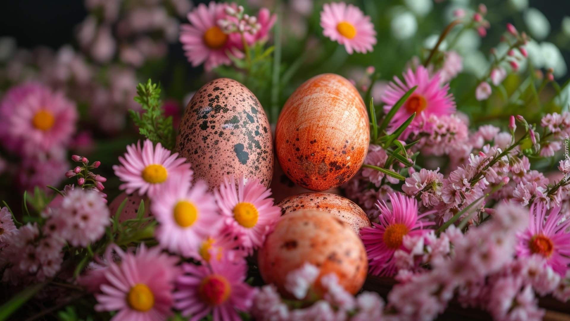 Edytor tapety: Kolorowe pisanki wśród astrów
