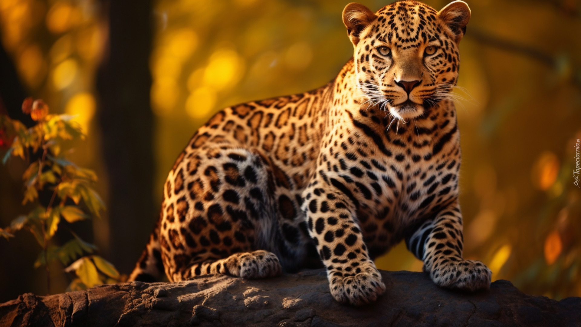 Edytor tapety: Siedzący jaguar w zbliżeniu