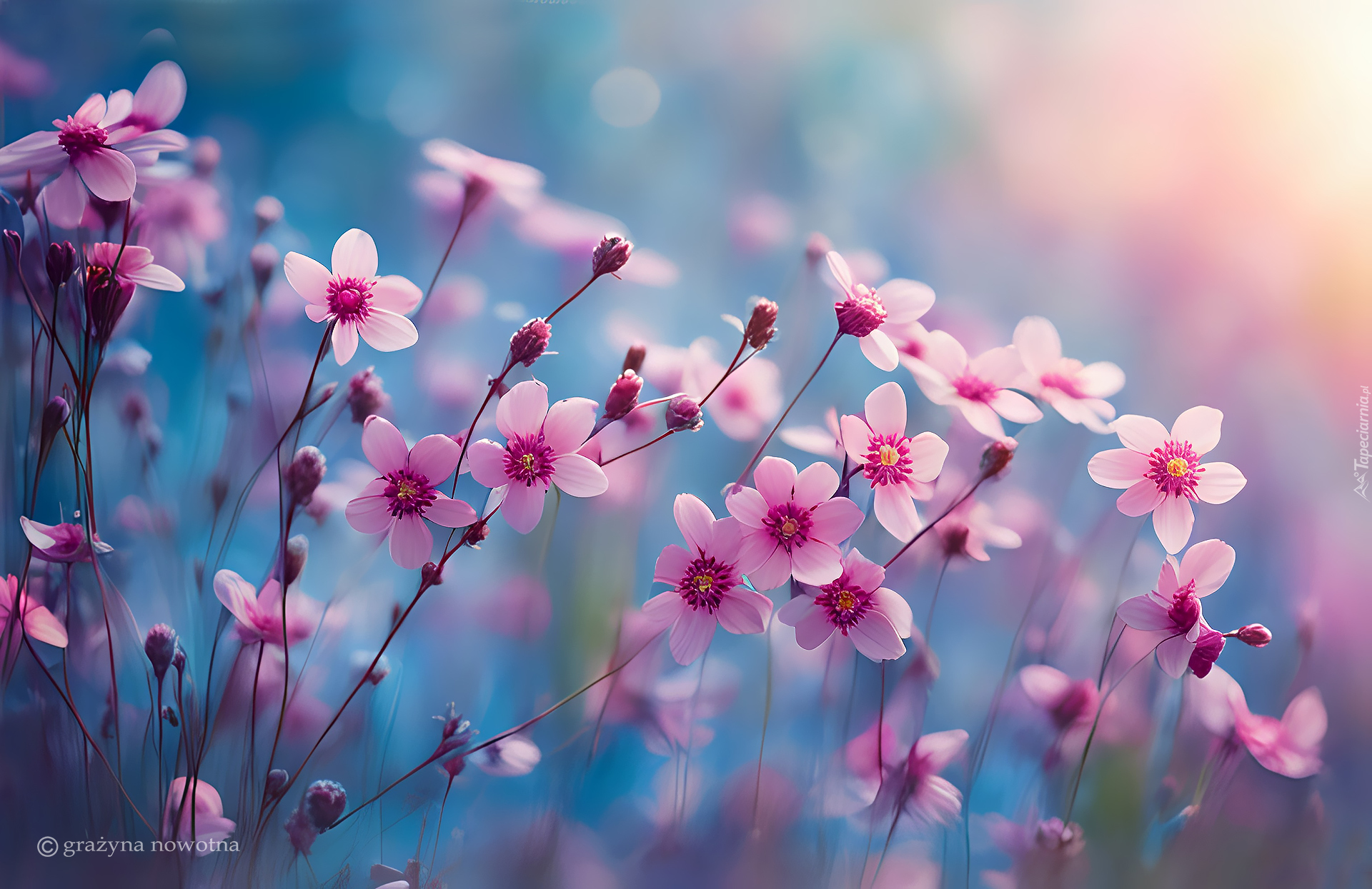 Edytor tapety: Rozświetlone drobne różowe kwiatuszki