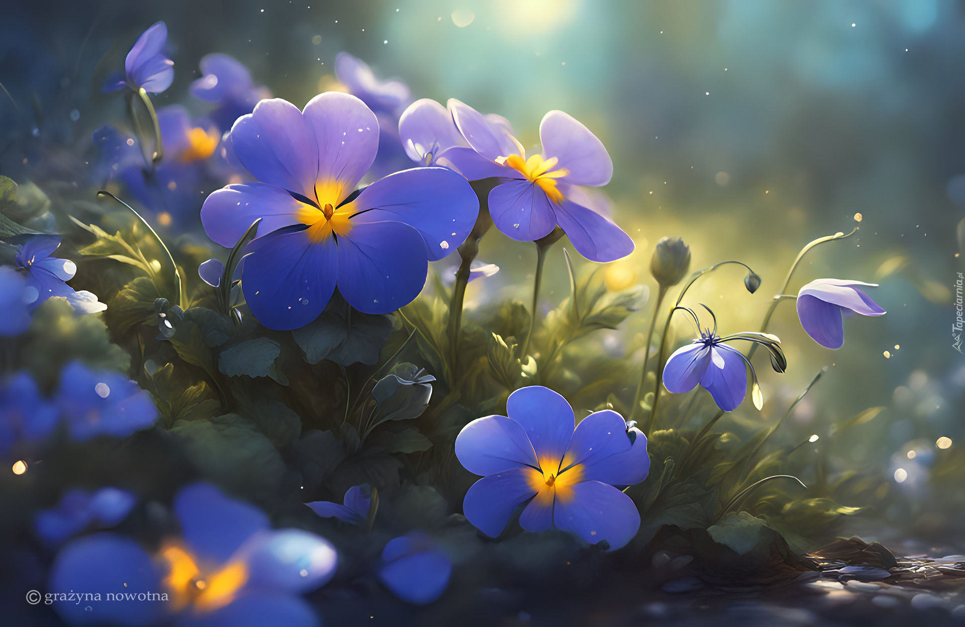 Edytor tapety: Rozświetlona kępka niebieskich kwiatków