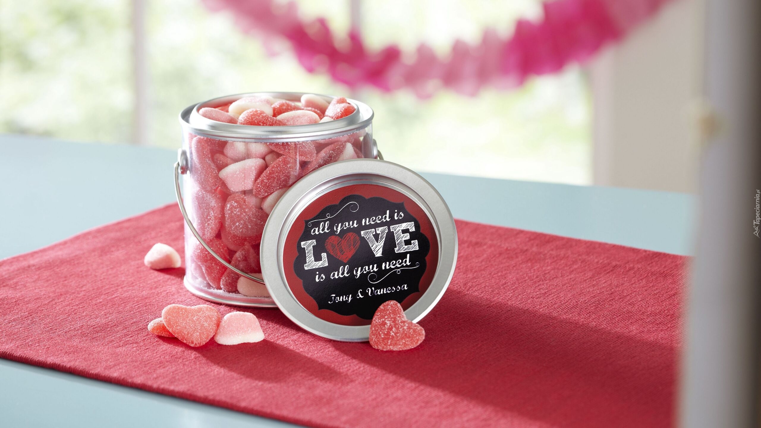 Edytor tapety: Żelki w kształcie serca w pojemniku