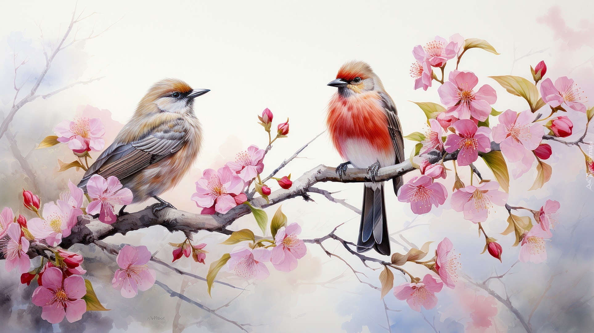 Edytor tapety: Ptaki na ukwieconej gałązce