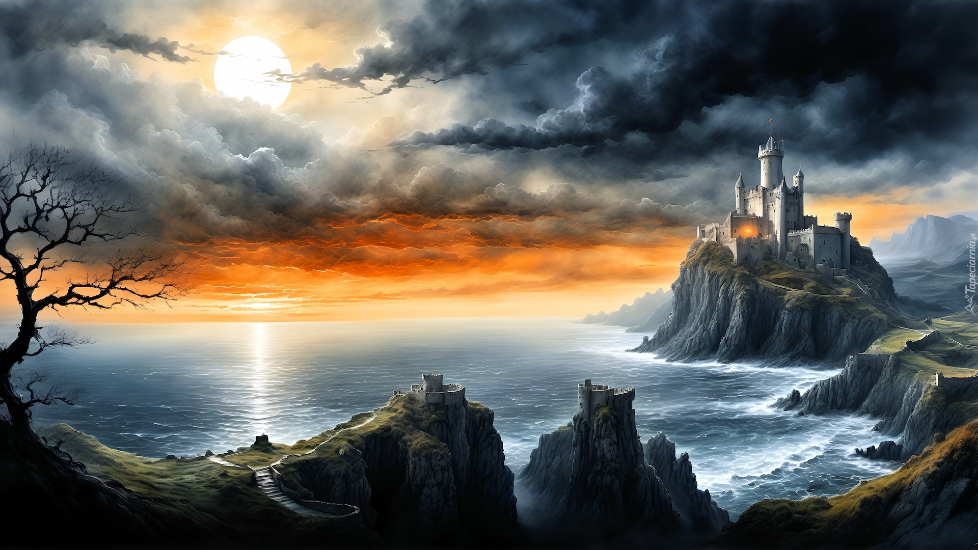 Edytor tapety: Zamek na skalistym brzegu morza