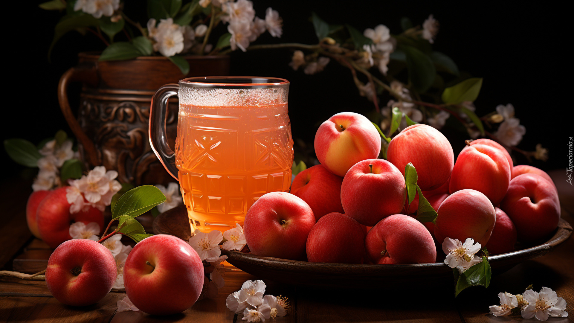 Edytor tapety: Sok w kuflu obok jabłek