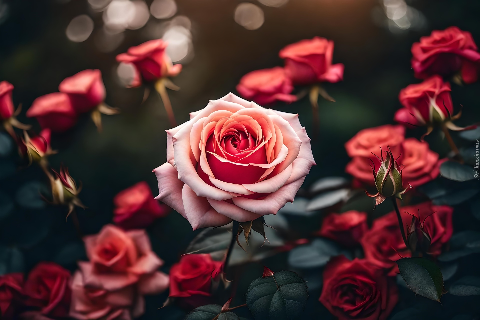 Edytor tapety: Róże z pąkami na rozmytym tle