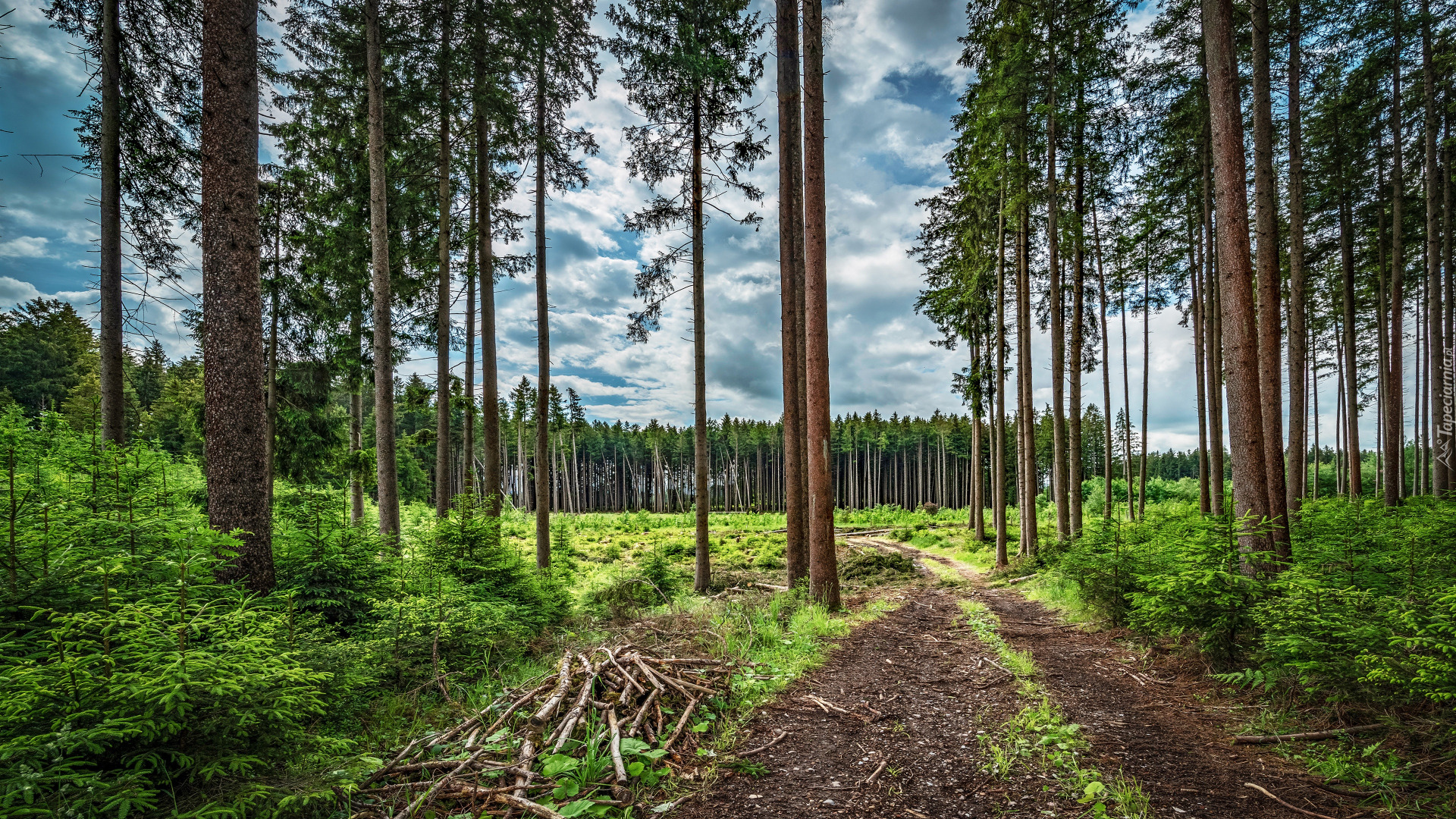 Edytor tapety: Ścieżka pod wysokimi sosnami