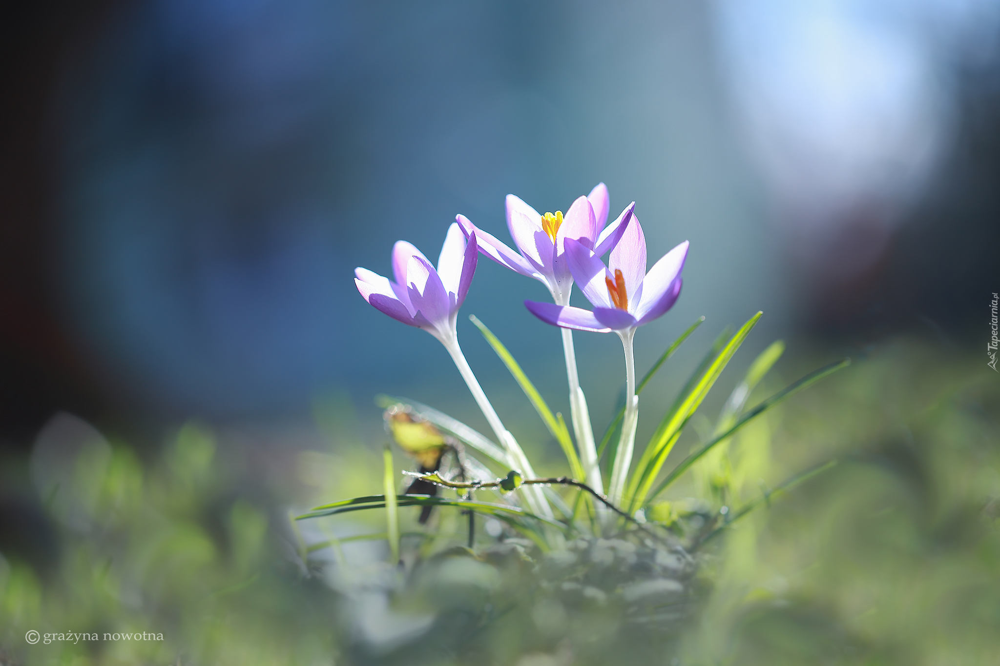 Edytor tapety: Kępka krokusów w blasku światła