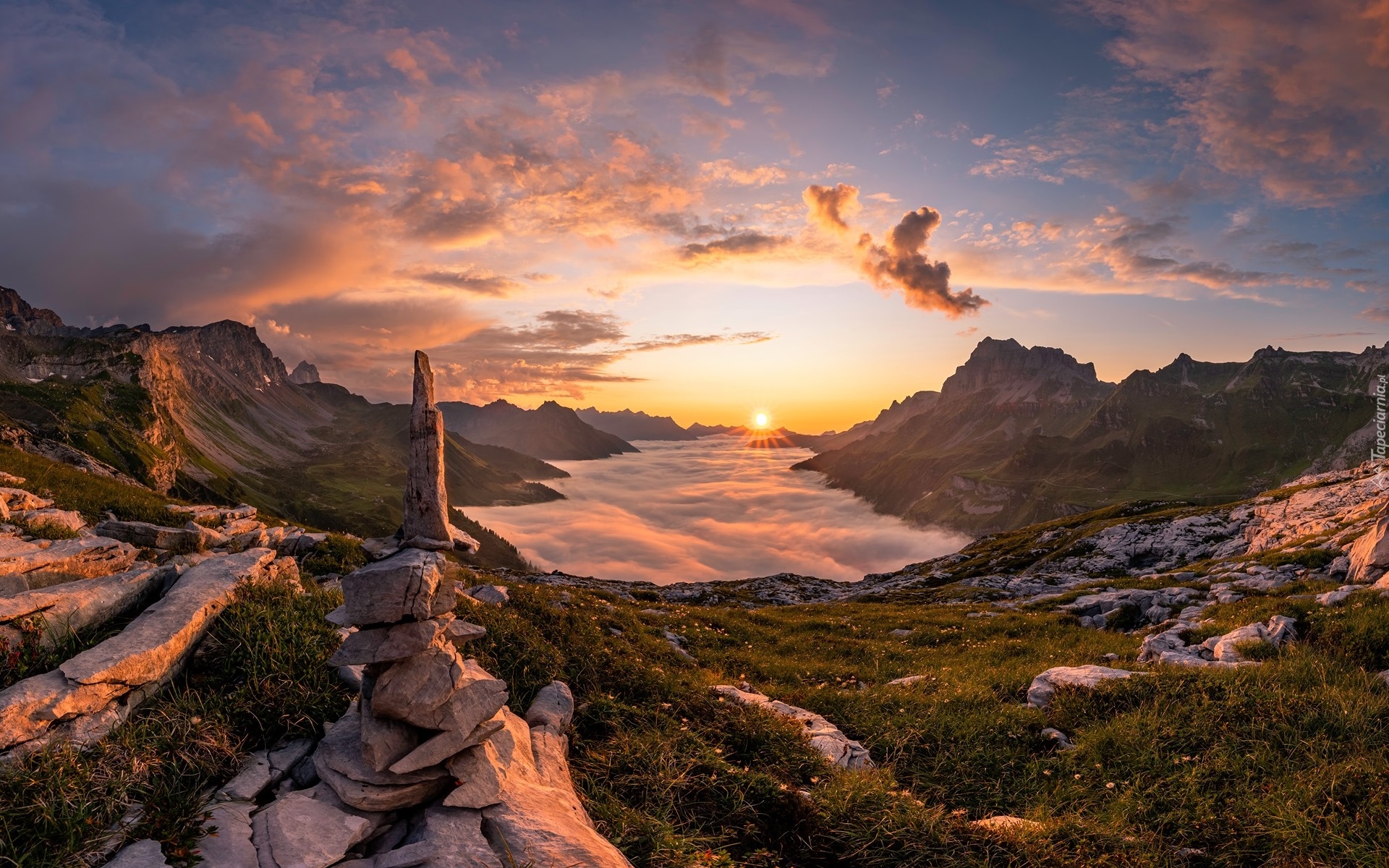 Edytor tapety: Zamglona przełęcz Klausenpass w Alpach Glarneńskich