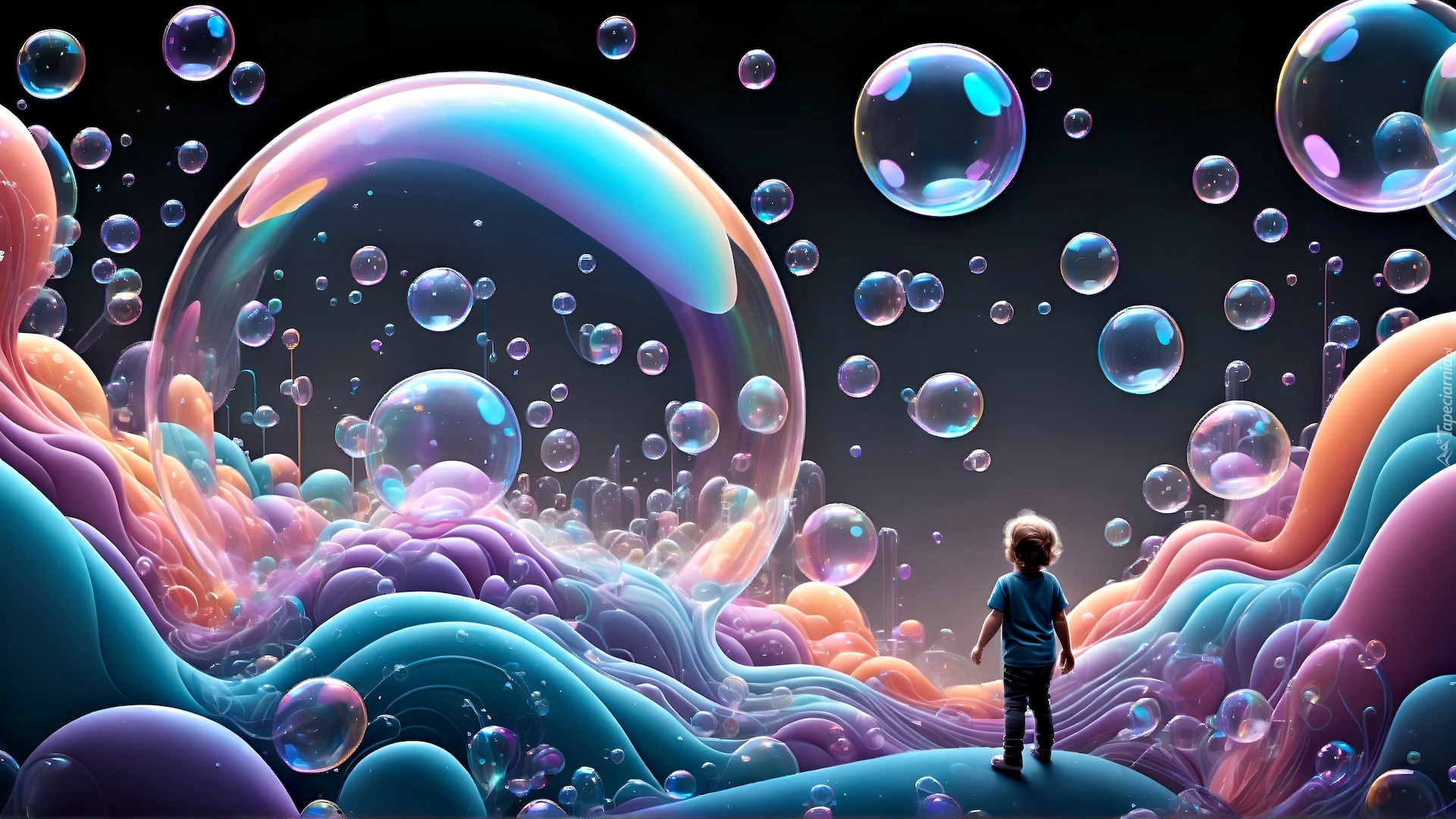 Edytor tapety: Chłopiec i bańki mydlane w grafice
