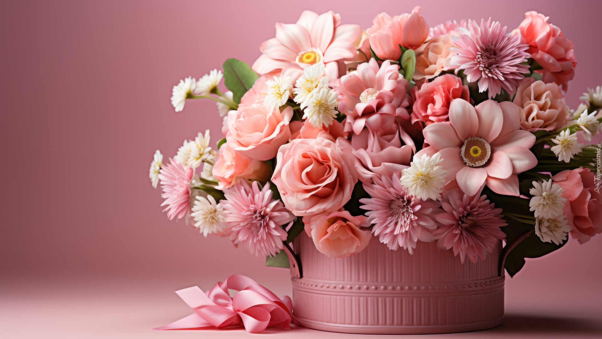 Edytor tapety: Bukiet kwiatów w okrągłym pojemniku