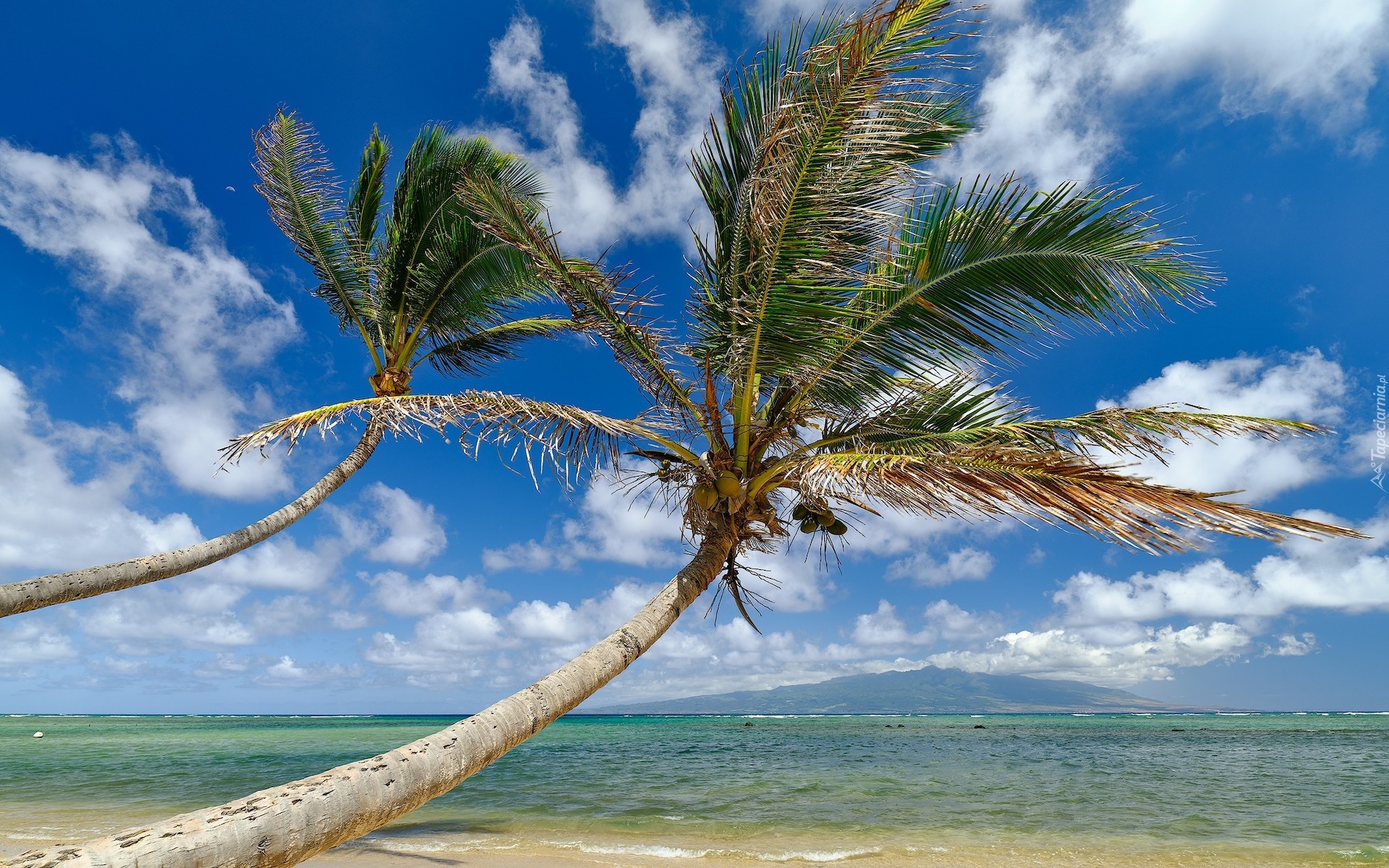 Edytor tapety: Dwie palmy pochylone nad morzem