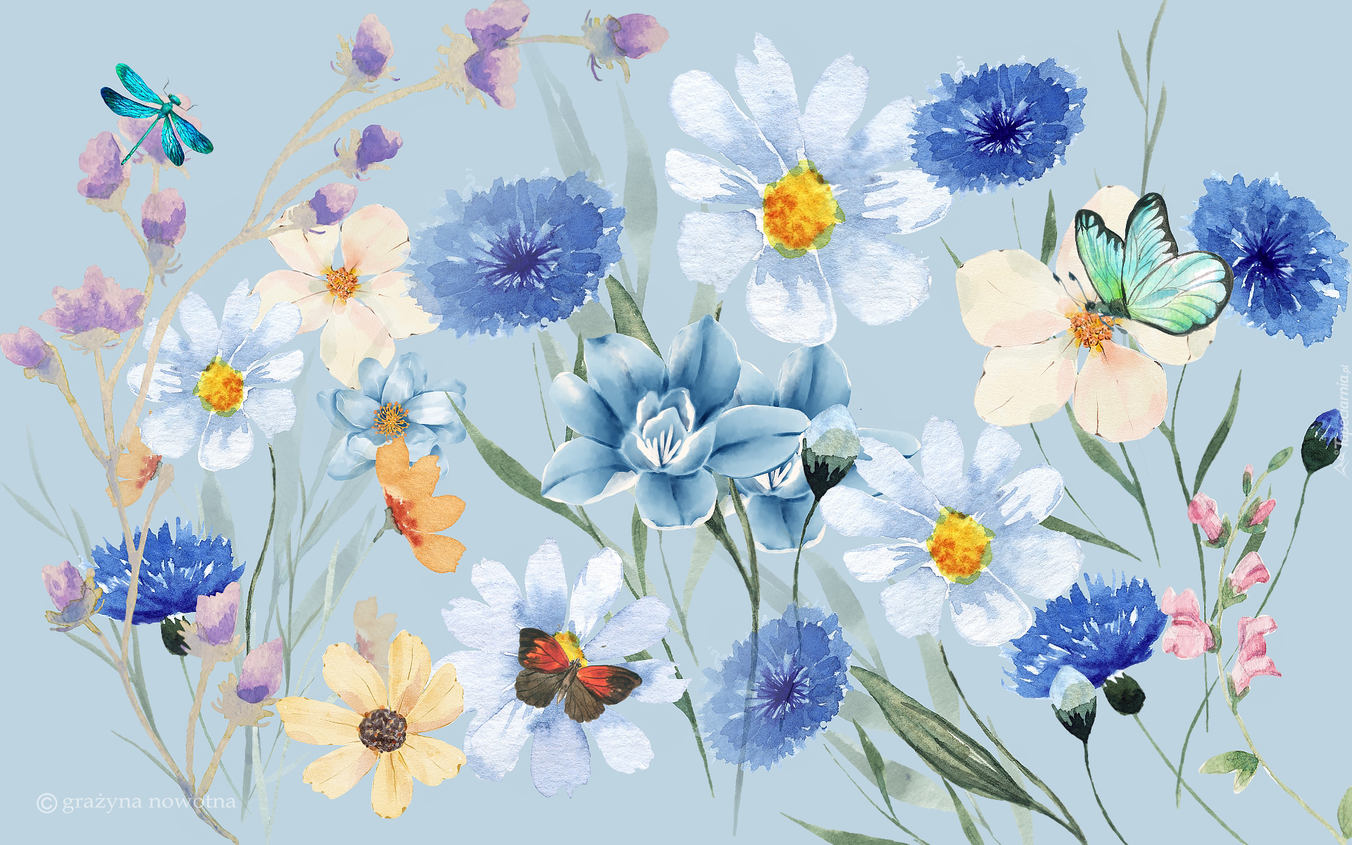 Edytor tapety: Motyle na kolorowych kwiatach w grafice