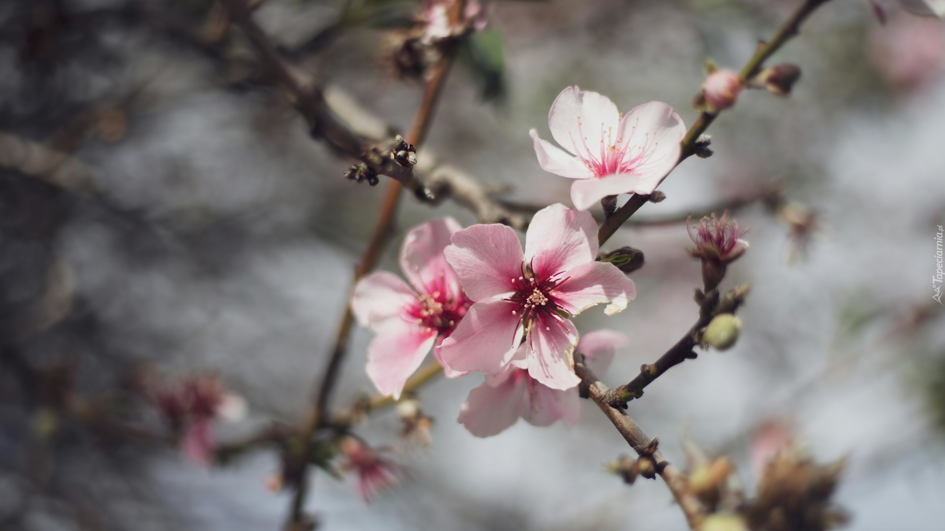 Edytor tapety: Kwiaty i pąki na gałązce drzewa owocowego