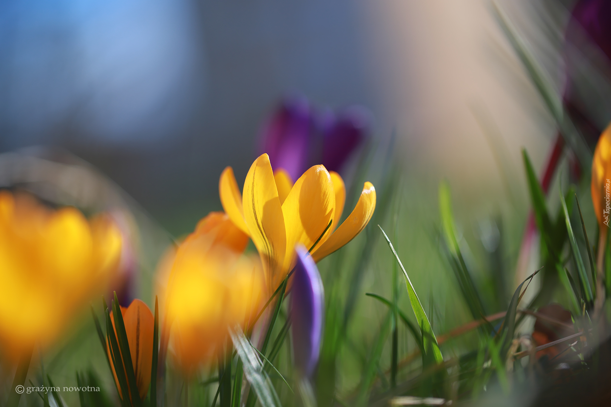 Edytor tapety: Żółty rozświetlony słońcem krokus w zbliżeniu