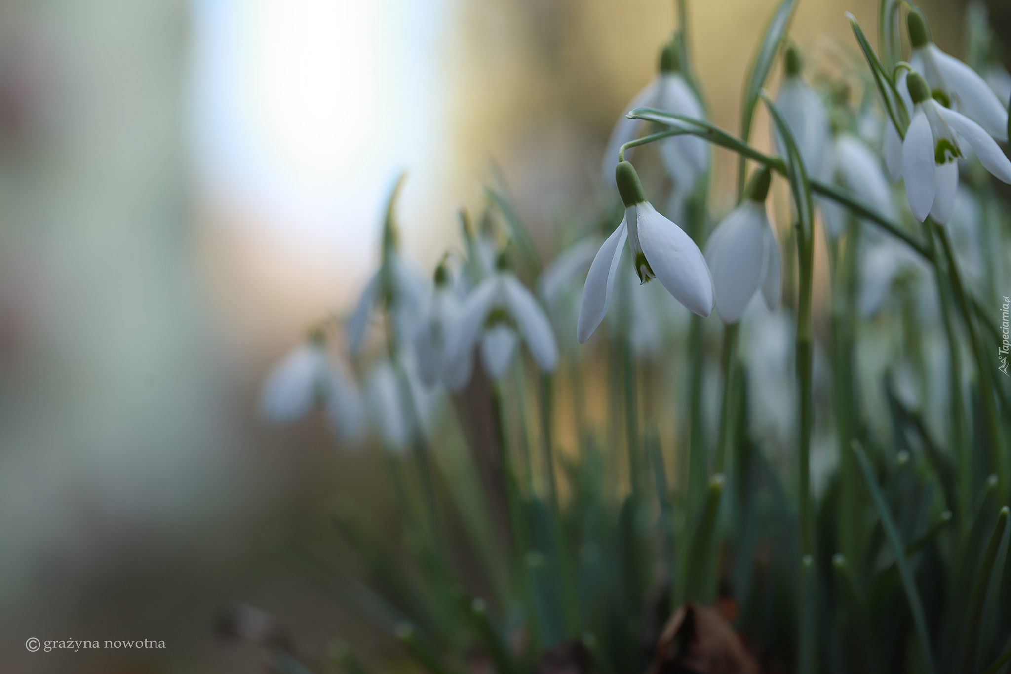 Edytor tapety: Rozmyte tło i białe przebiśniegi
